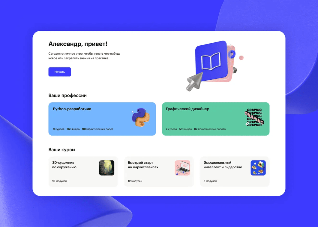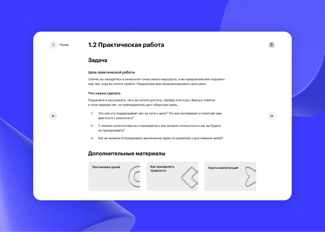 Вы можете изучать материалы курса в удобном вам режиме, совмещать обучение с работой и личной жизнью. Более того, все уроки будут доступны и по окончании курса, так что вы сможете освежить свои знания в любой момент.Вы можете изучать материалы курса в удобном вам режиме, совмещать обучение на платформе с работой и личной жизнью. Более того, все видео будут доступны и по окончании курса, так что вы сможете освежить свои знания в любой момент.
