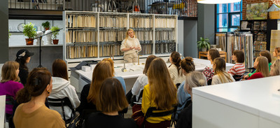 Это первая в России библиотека материалов для дизайнеров среды. В ней участники курса тренируются делать вдохновляющие подборки для своих будущих проектов из образцов тканей, отделочных материалов, выкрасов и фурнитуры, знакомятся с новыми брендами и материалами.