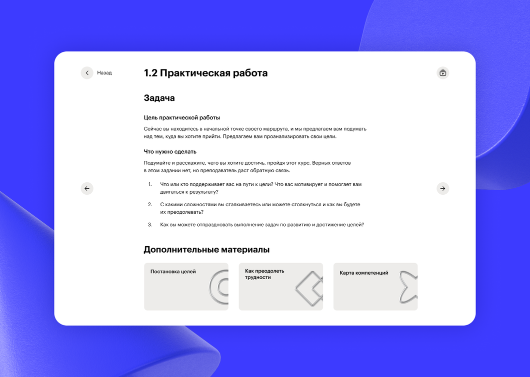 Изучай материалы курса в удобном для тебя режиме, сможешь совмещать обучение на платформе с работой и личной жизнью. Более того, все материалы будут доступны и по окончании курса, так что будет возможность освежить свои знания в любой момент.