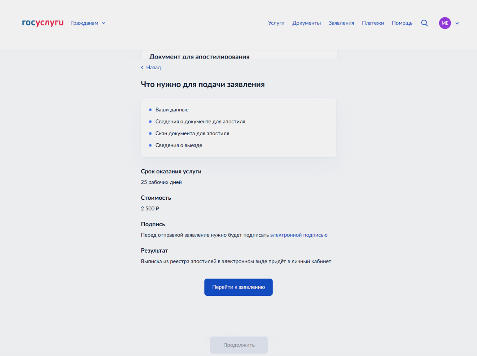 На портале «Госуслуги». Заявление можно сформировать в личном кабинете на портале «Госуслуги». Можно подать заявление как на традиционный апостиль на бумажном носителе, так и на электронный.