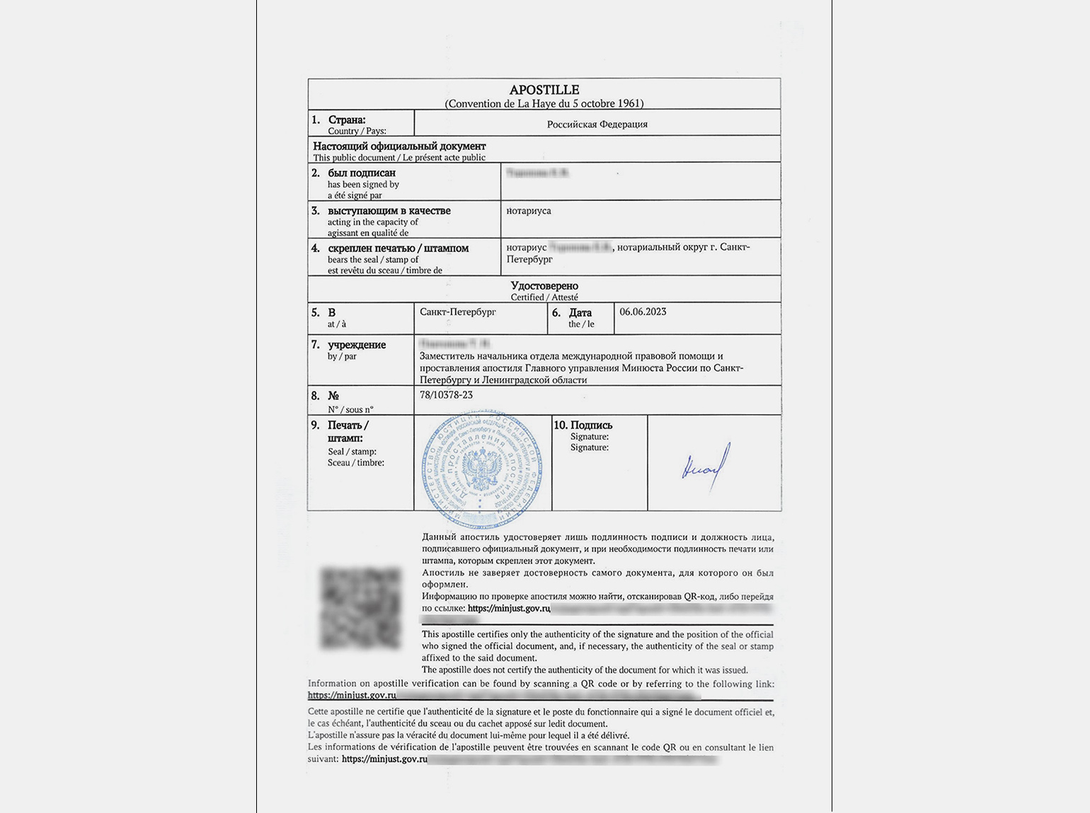 Апостиль — это международная форма, которая подтверждает юридическую силу документов за границей без необходимости дополнительно обращаться в консульства. Апостиль действует между странами-участницами Гаагской конвенции.
