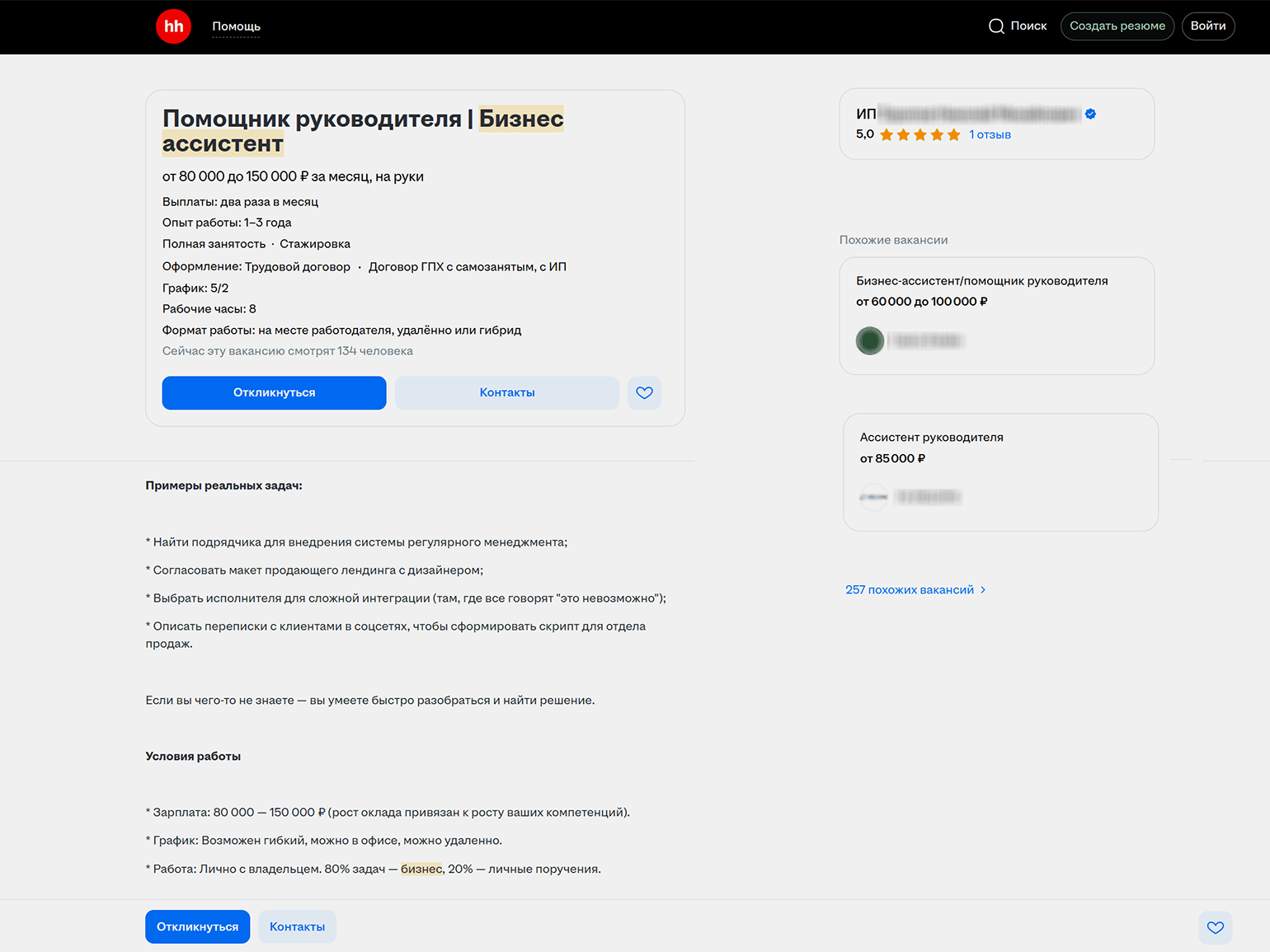При этом зарплаты для новичков могут быть низкими, особенно на позициях с частичной занятостью. В вакансиях без требований к опыту нередко предлагают 10–20 тысяч рублей в месяц за несколько часов работы в день или выполнение отдельных поручений. При полной занятости начинающие ассистенты могут рассчитывать на 40–60 тысяч рублей в месяц.