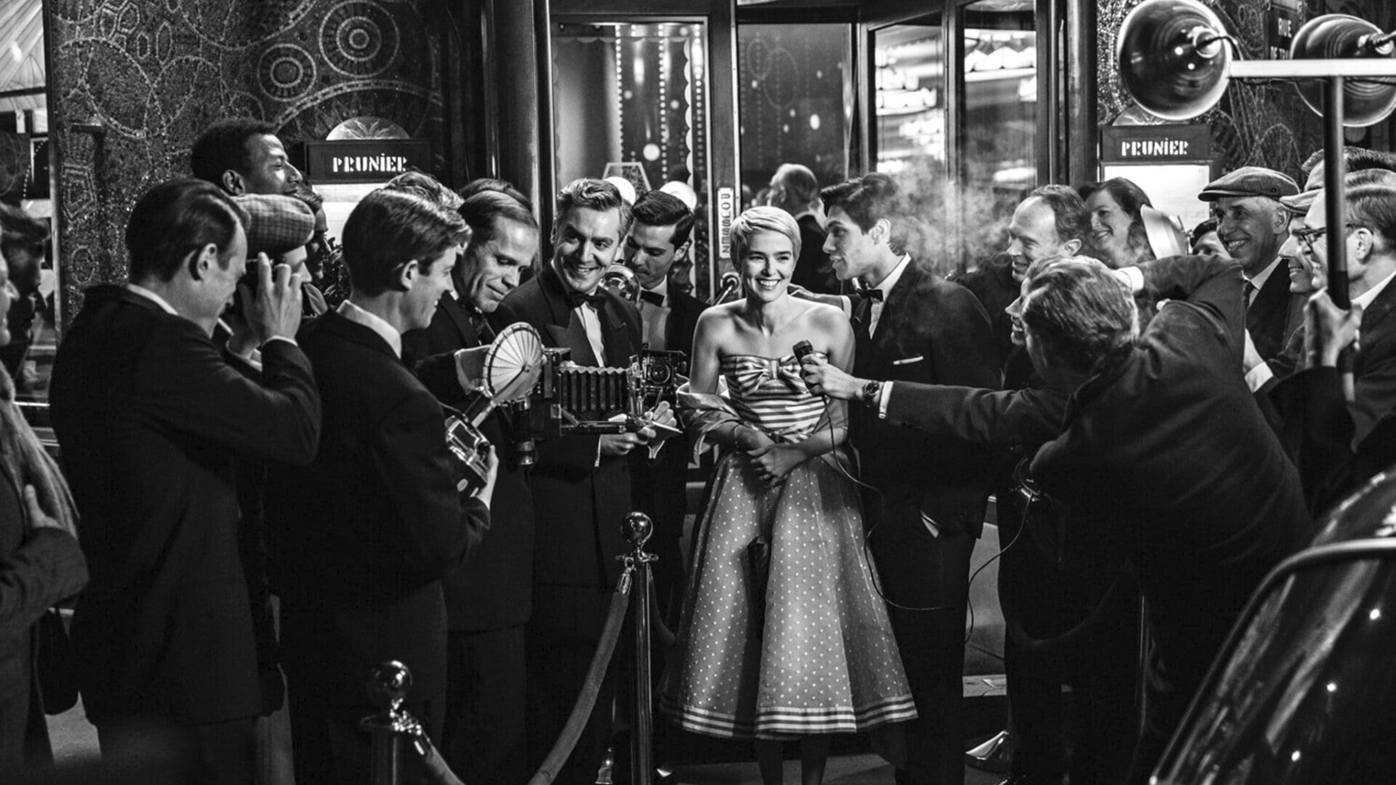 В фильме балом правит стилизация, и, стоит признать, в «Новой волне» она сделана безупречно. На улицах Парижа разъезжают автомобили 1950–1960-х. В редакции Cahiers du cinéma висят постеры культового кино и неустанно стучат печатные машинки, выпуская в свет язвительные рецензии французских критиков.