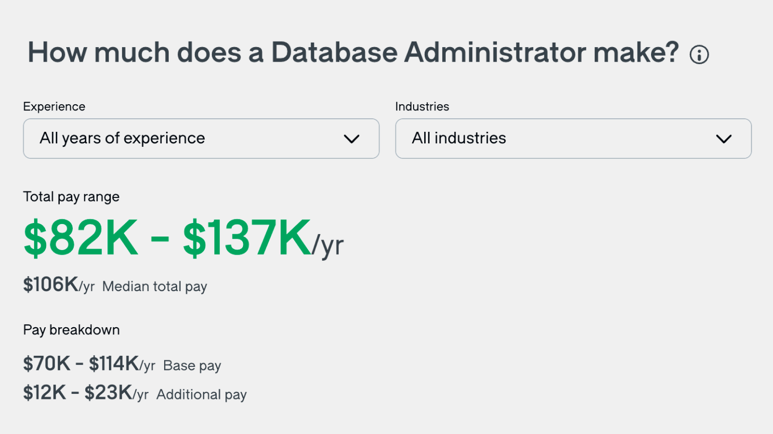 На международном рынке уровень зарплат выше. Например, в США администраторы баз данных зарабатывают в среднем около 106 тысяч долларов в год. В крупных технологических компаниях и стартапах доход может доходить до 150–200 тысяч долларов в год и выше.