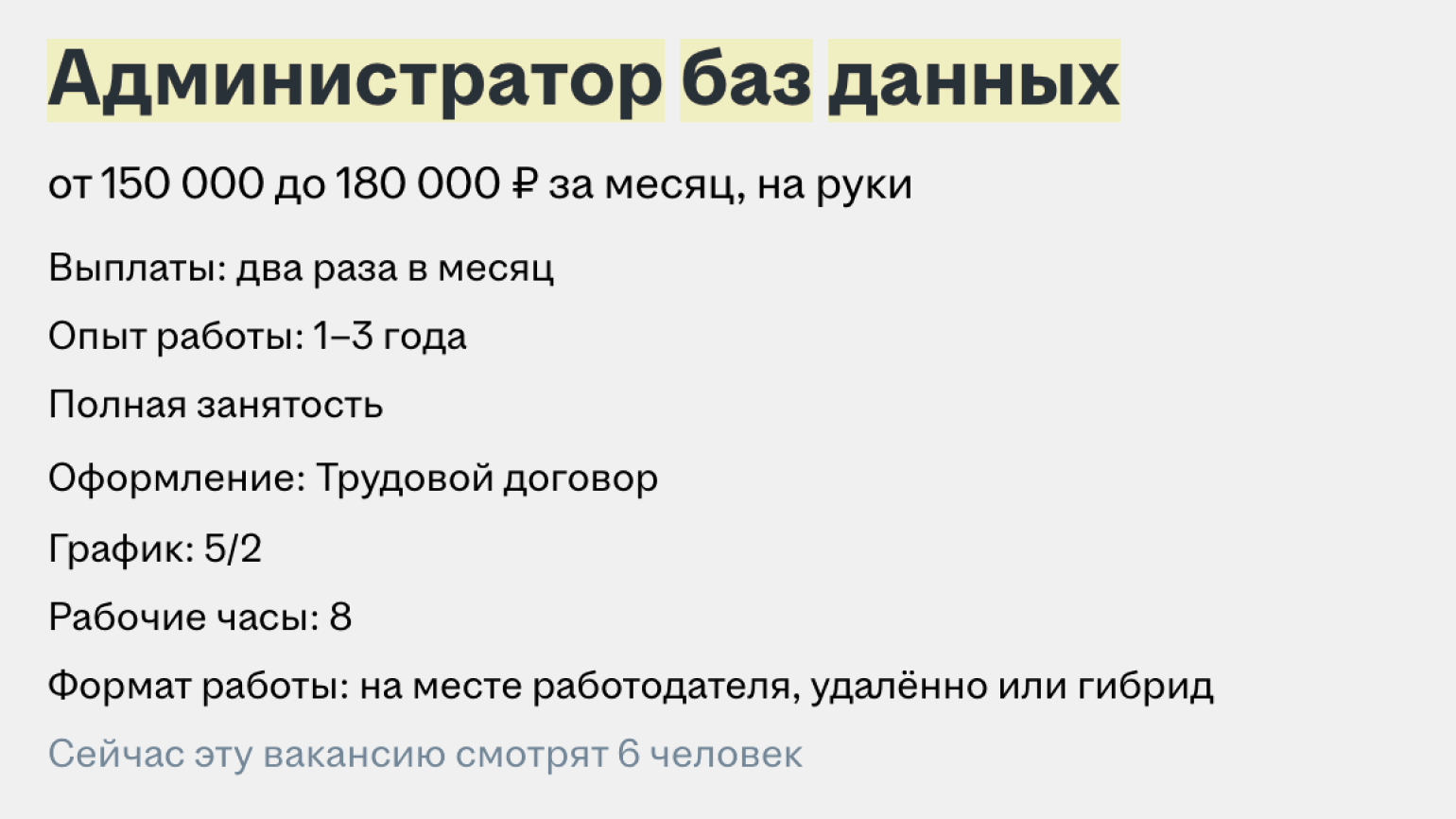 Шаг 6: откликайтесь на вакансии. Не ждите, пока будете готовы полностью. Начинайте откликаться, как только закрыли базу: SQL, понимание СУБД и практику на реальных задачах. На собеседованиях быстро станет понятно, каких знаний не хватает, — это поможет точнее выстроить дальнейшее обучение.