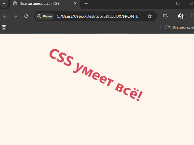 Если мы откроем браузер, то анимация будет выглядеть вот так: