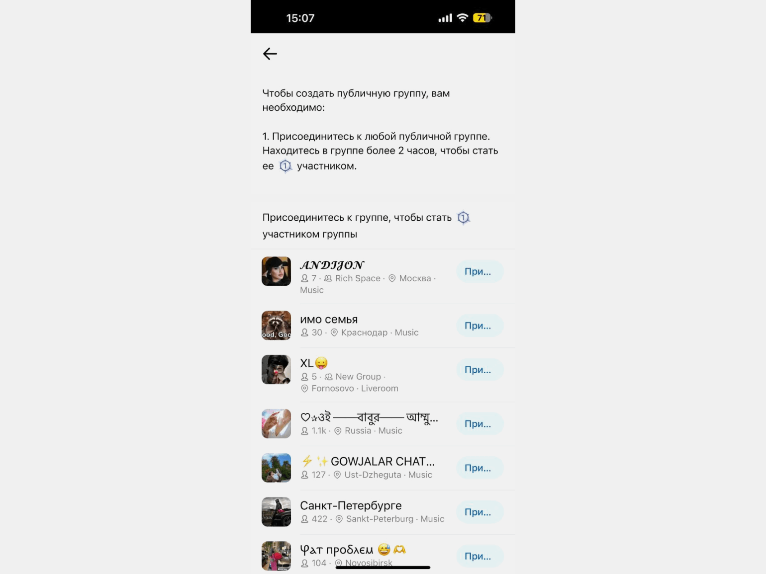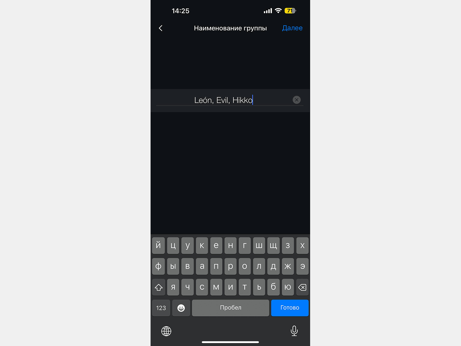 В приватной группе достаточно придумать название — и участники получат оповещение о добавлении. Если название не задано, мессенджер автоматически перечислит имена участников. Общение в группе устроено так же, как в обычном чате.