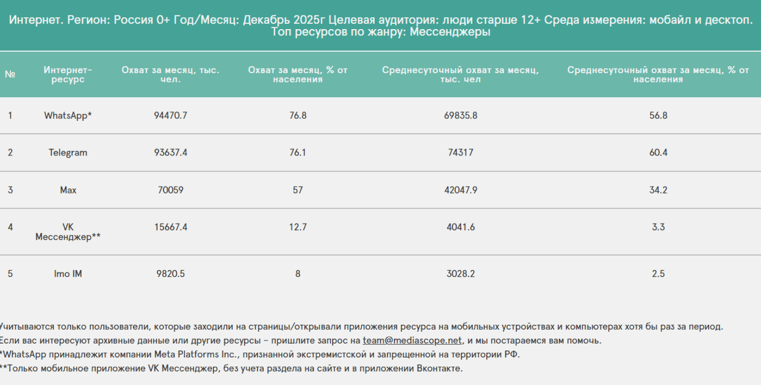 На момент обзора (март 2026 года) Imo в России работает без ограничений и, по данным Mediascope, входит в пятёрку самых популярных мессенджеров с аудиторией в 10 миллионов человек. Более того, некоторые мобильные операторы включают мессенджер в перечень приложений, трафик которых не тарифицируется.