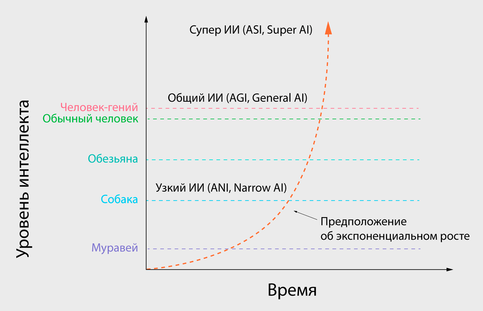 Наглядное представление об уровнях интеллекта и процессе развития ИИ