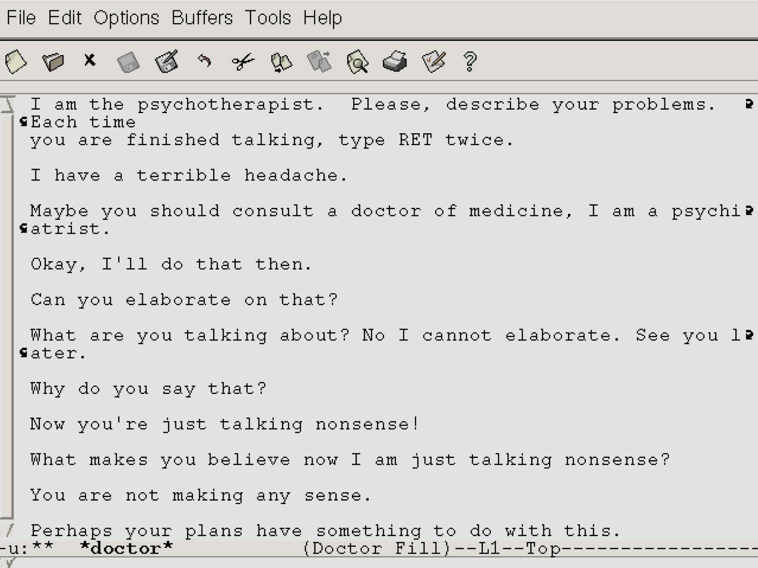 Внешний вид программы Eliza
