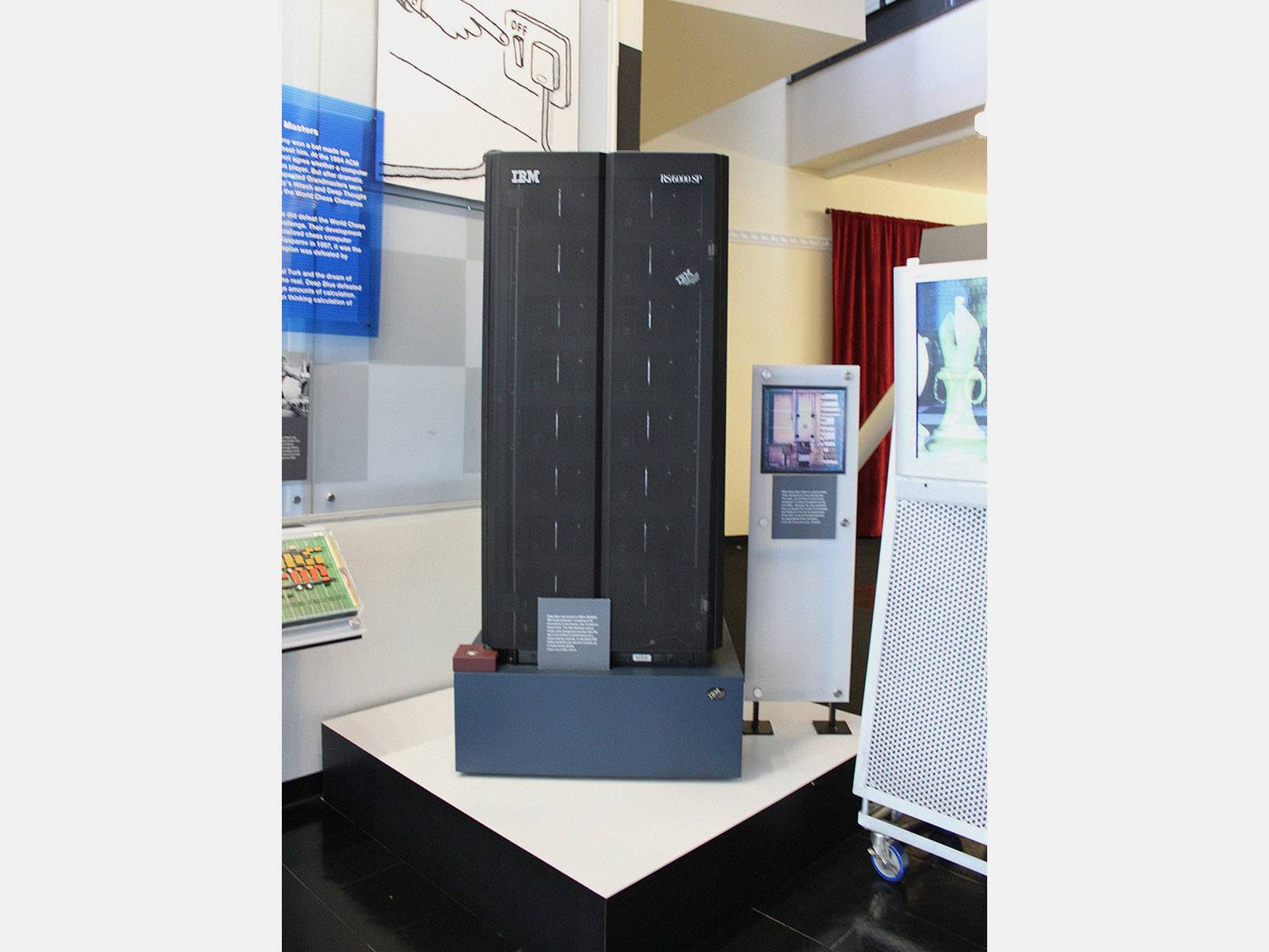 Одна из двух стоек Deep Blue с экраном и шахматной доской для игры с людьми