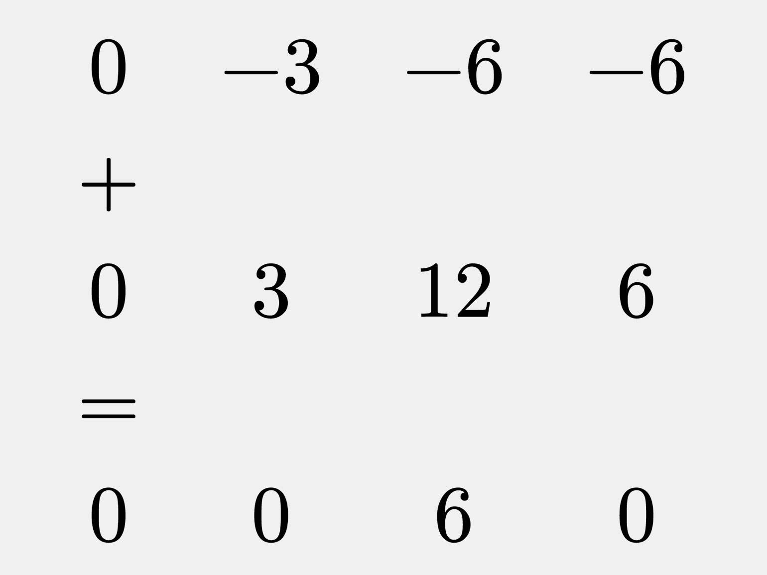 К четвёртой строке прибавляем первую, умноженную на 6.