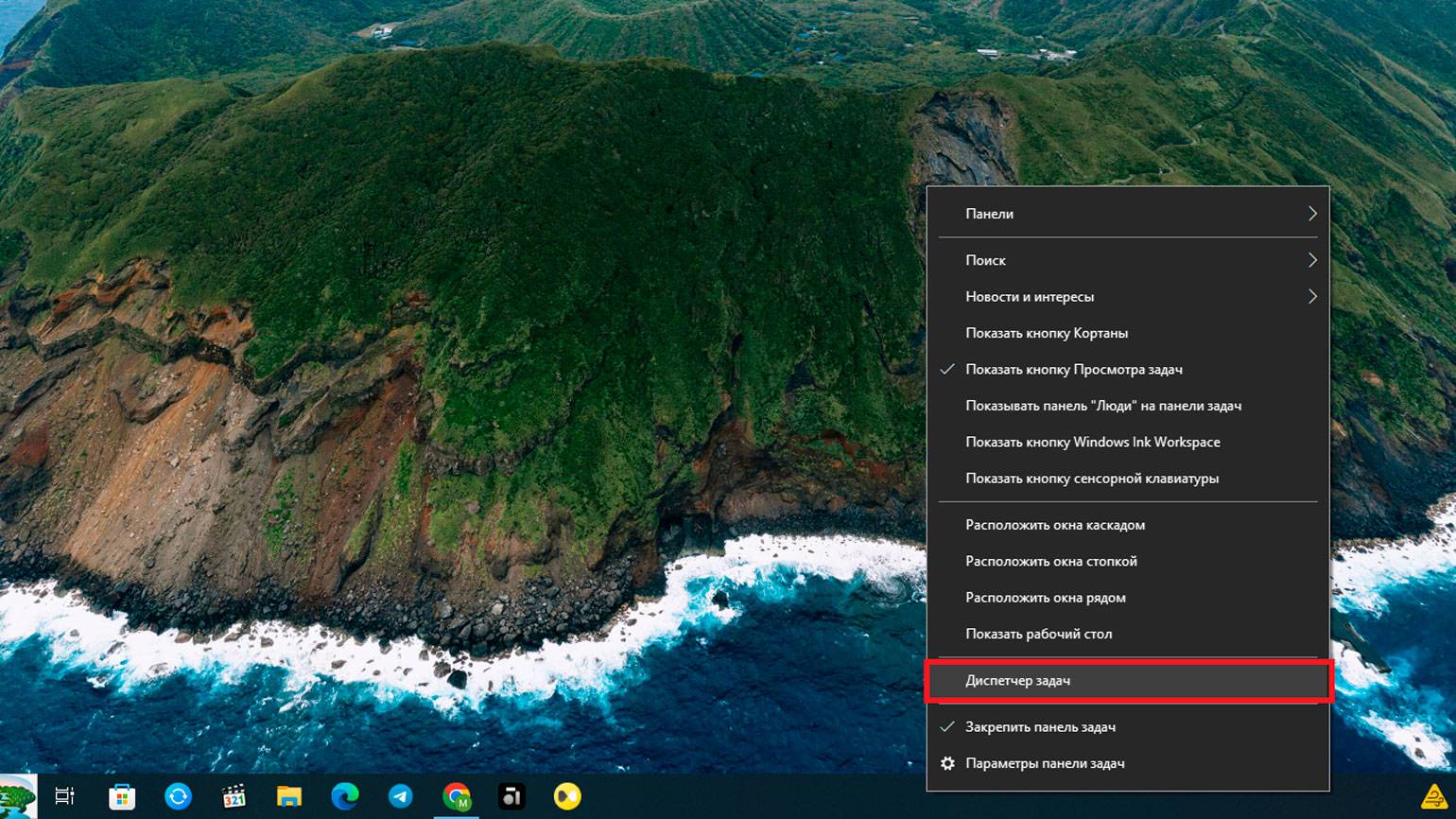 Ещё один официальный способ — щёлкнуть правой кнопкой мыши по кнопке Пуск и выбрать пункт Диспетчер задач. Способ удобен, если вы не любите горячие клавиши или просто лучше ориентируетесь в интерфейсе, чем в клавиатуре.