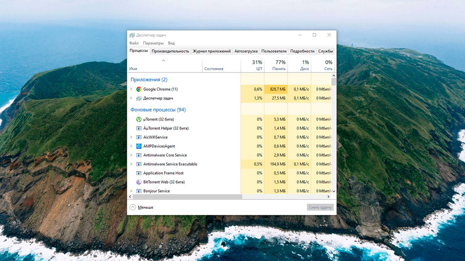 Так можно быстро понять, что именно тормозит компьютер: браузер с десятками вкладок, игра, обновление, антивирусная проверка или фоновая программа, о которой вы давно забыли.
