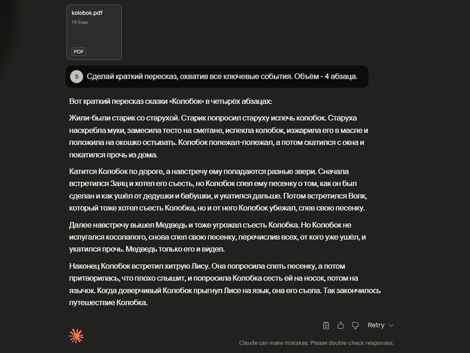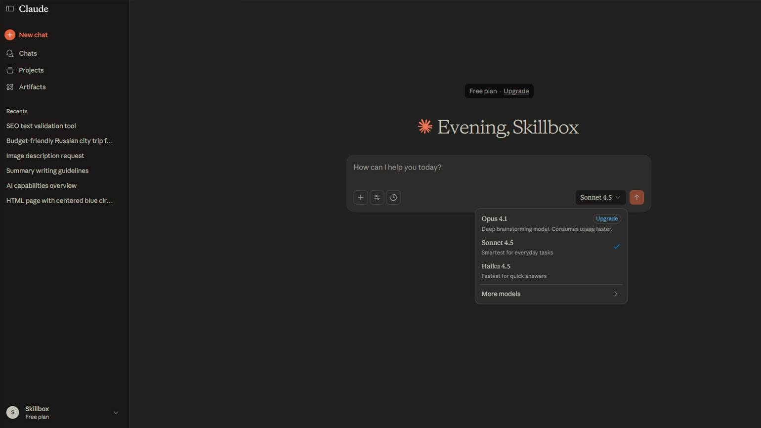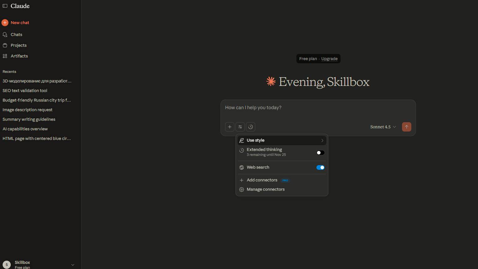 Скриншот: Claude / Skillbox Media