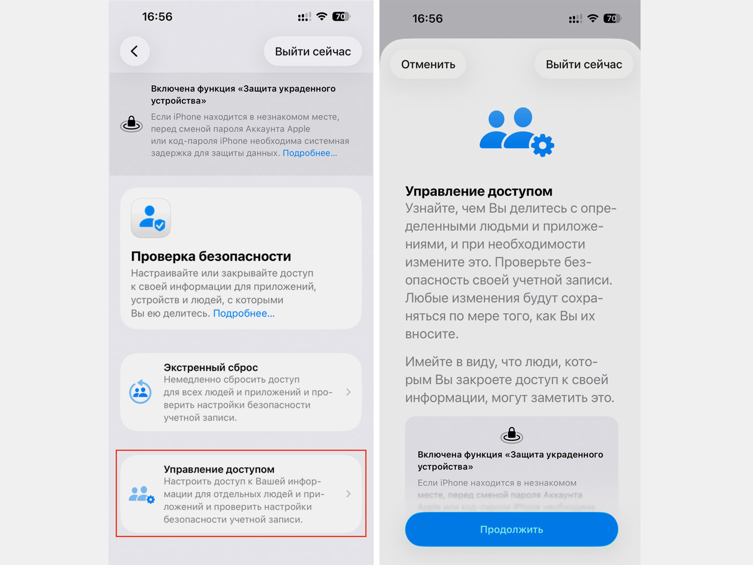 Чтобы найти сервис, перейдите в Настройки → Конфиденциальность и безопасность → Проверка безопасности → Управление доступом.