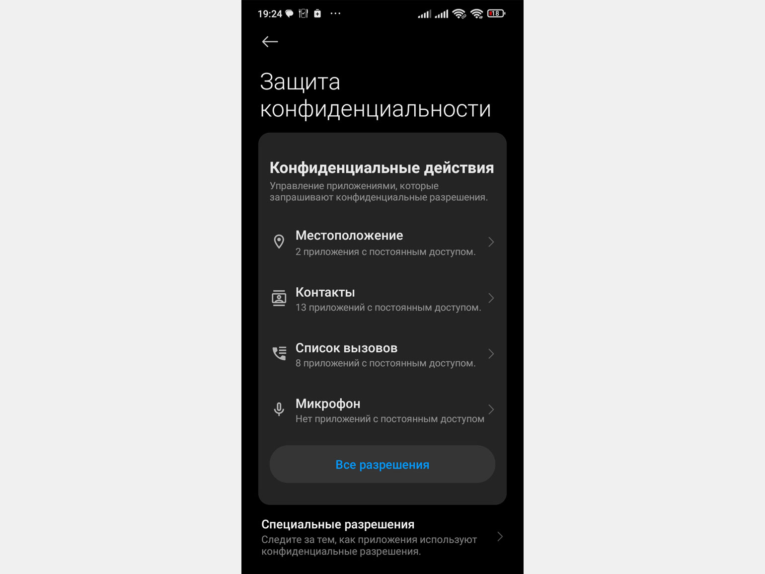 Этот инструмент позволяет быстро оценить, какие данные и доступы вы предоставили приложениям и сервисам. В настройках можно посмотреть текущие разрешения и при необходимости оперативно их сбросить — это удобно, если есть подозрение, что устройство скомпрометировано.