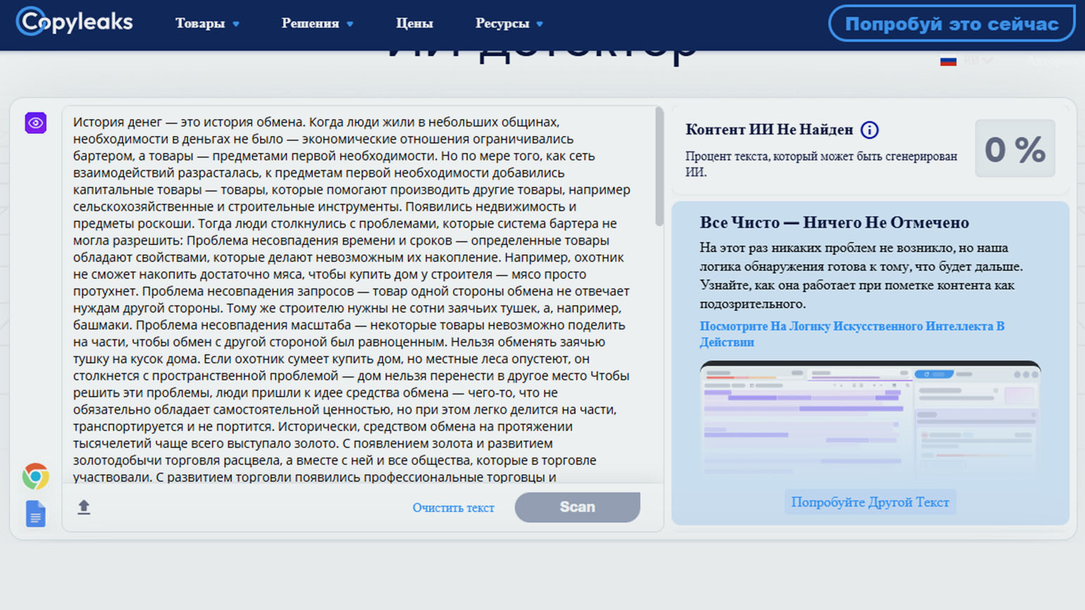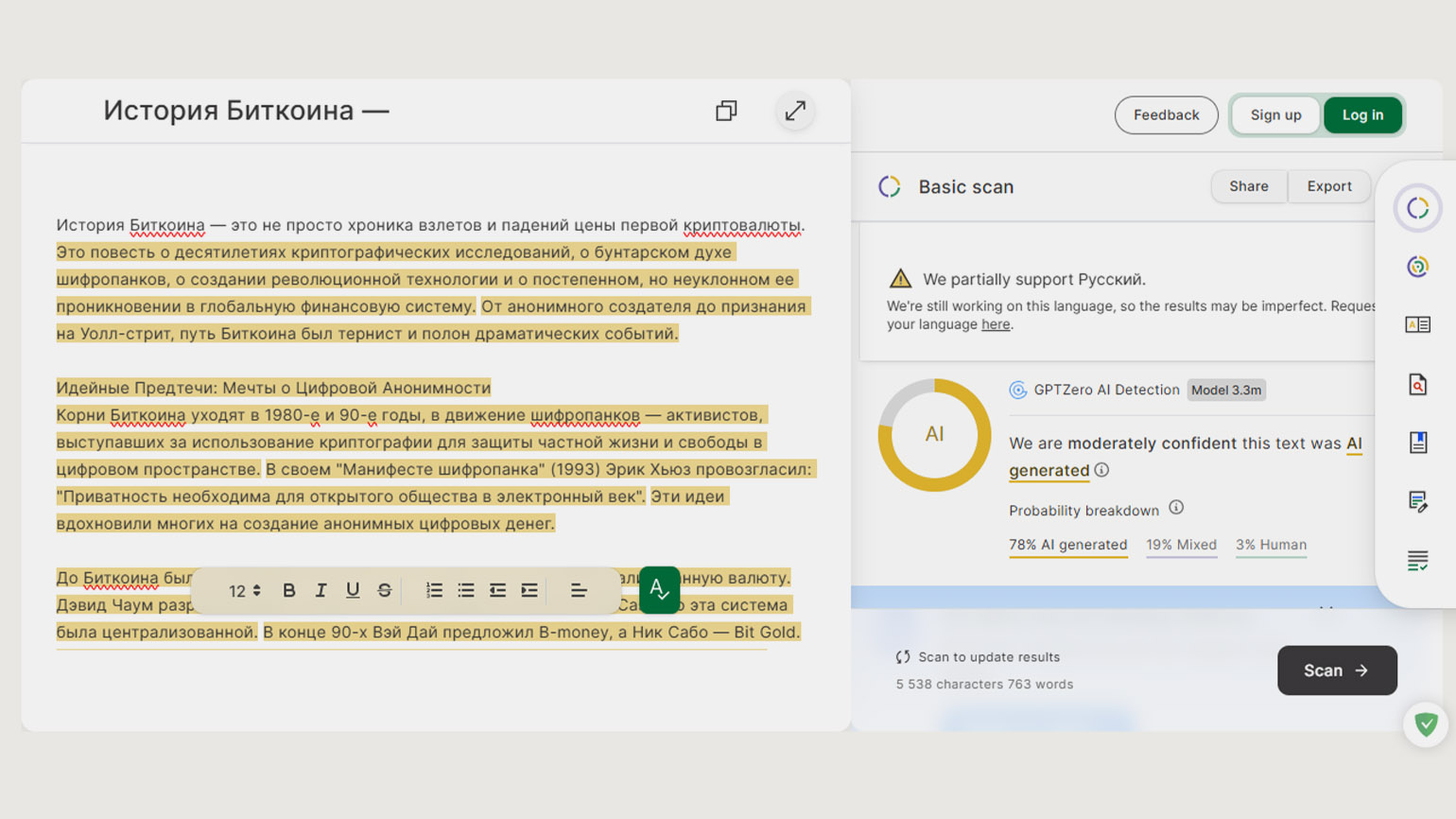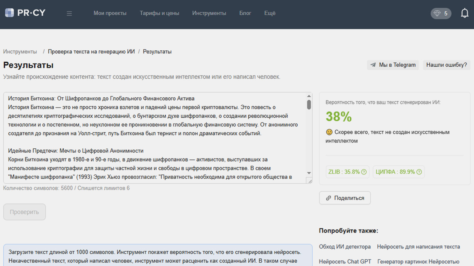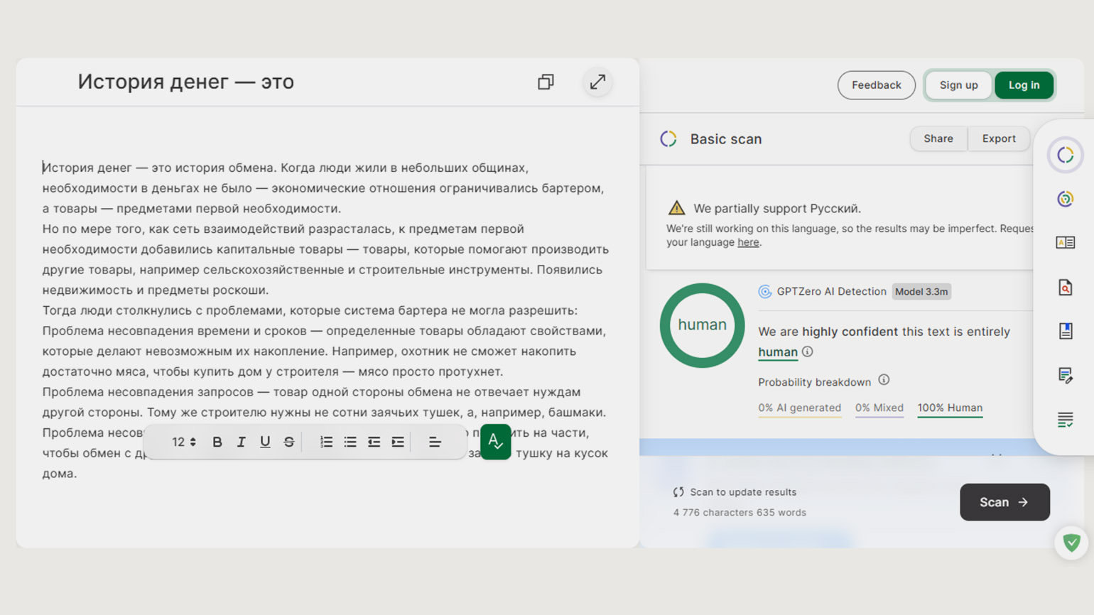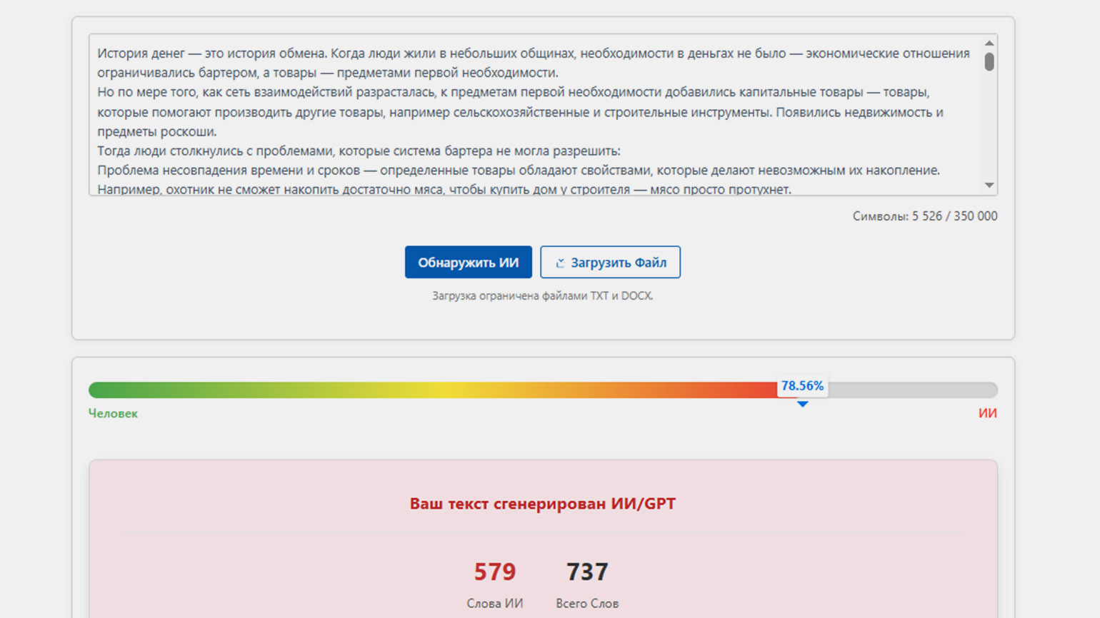 Наша проверка не претендует на серьёзный разбор — мы пропустили через детекторы всего два текста. Мы не загружали тексты, частично написанные ИИ, или нейросетевые тексты, прошедшие через редактора-человека. Но уже по результатам такого теста напрашивается вывод о том, что сервисам для проверки на ИИ нельзя доверять безоговорочно.