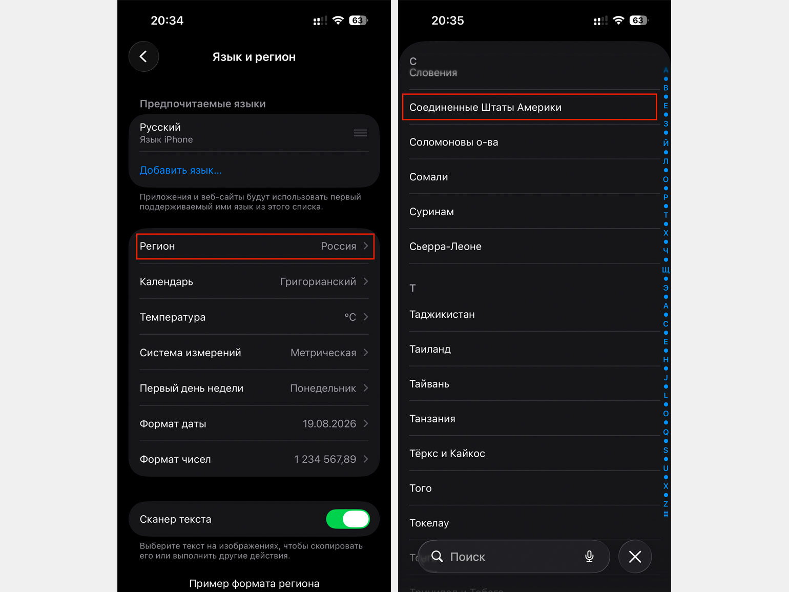 Шаг 3: смените регион телефона на США. Для этого откройте Настройки → Основные → Язык и регион → Регион. В выпадающем списке выберите Соединённые Штаты Америки.
