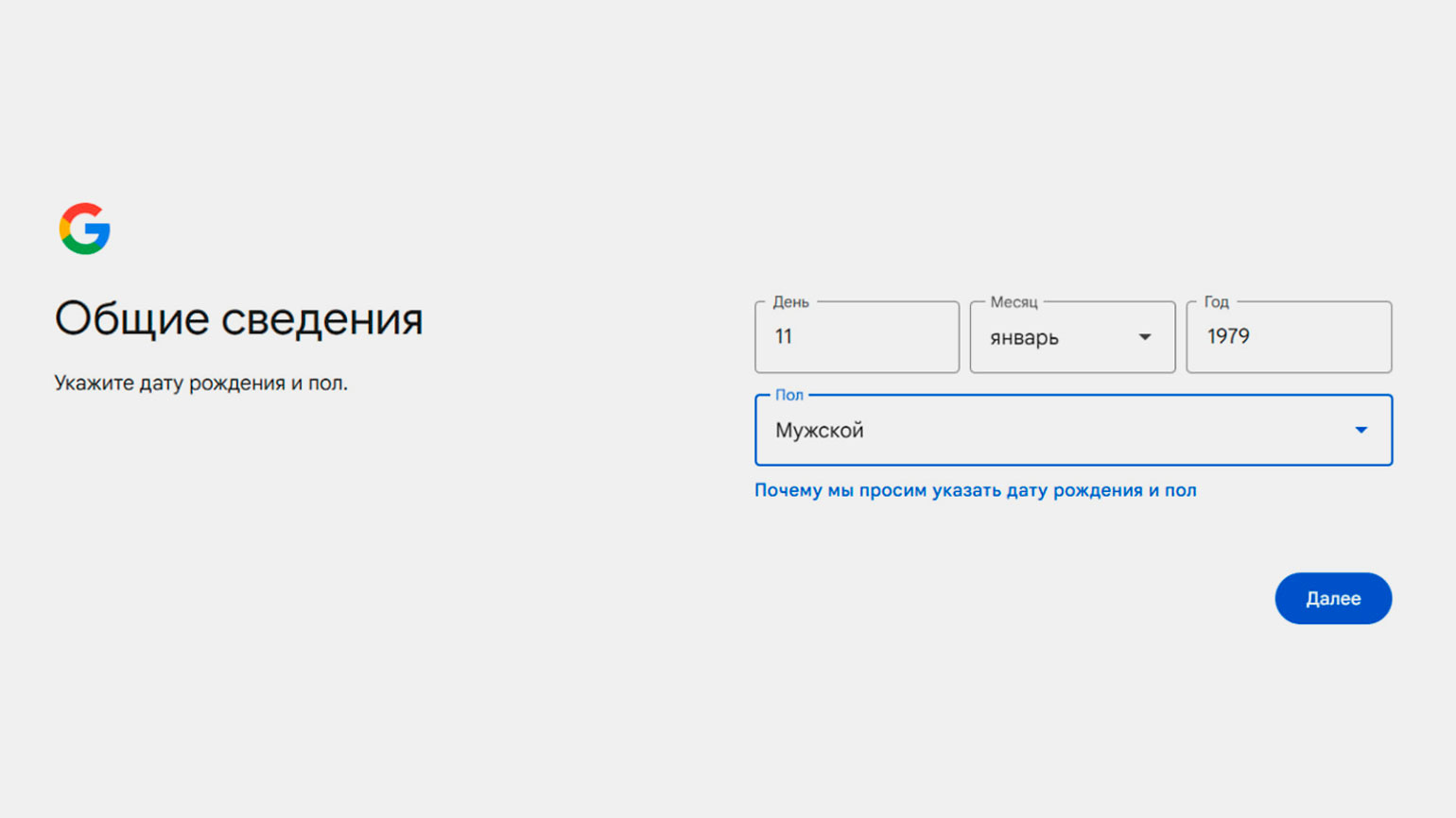Шаг 3: введите имя, пол и дату рождения.