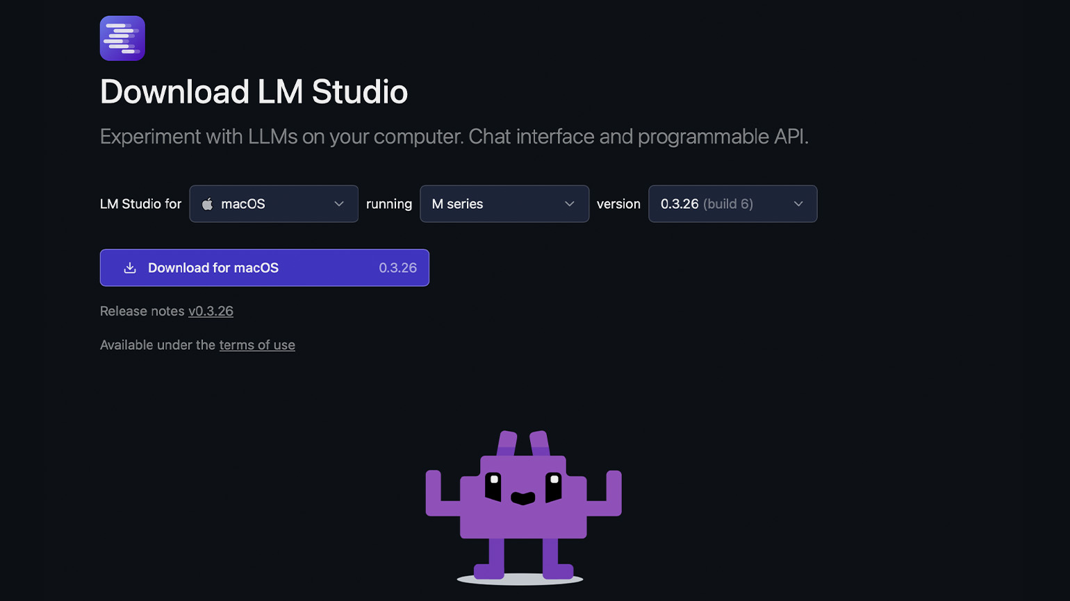 Перейдите на сайт lmstudio.ai и нажмите на кнопку Download. Мы установим LM Studio на MacBook Pro с чипом M1 Pro и 16 ГБ ОЗУ.