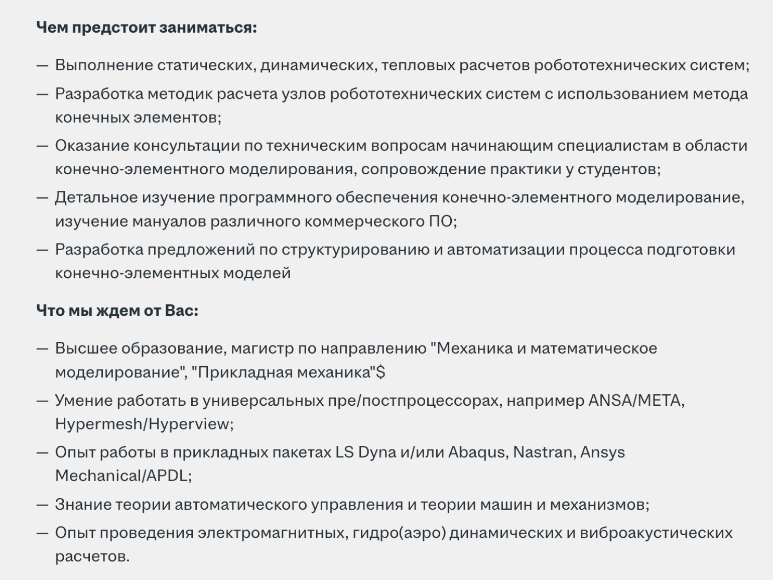 Университетская подготовка обеспечит сильную теоретическую основу, включающую высшую математику, теоретическую механику, электротехнику, алгоритмы и системы автоматического управления.