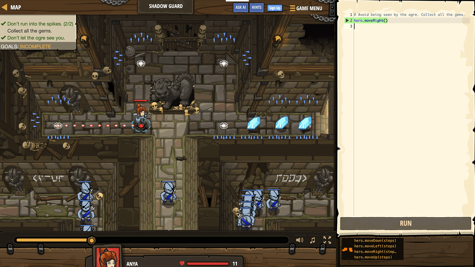 Если ребёнку интереснее играть, чем читать или смотреть инструкции, стоит попробовать игры, где программирование встроено в сам игровой процесс. В них код управляет героями, дронами и целыми мирами.