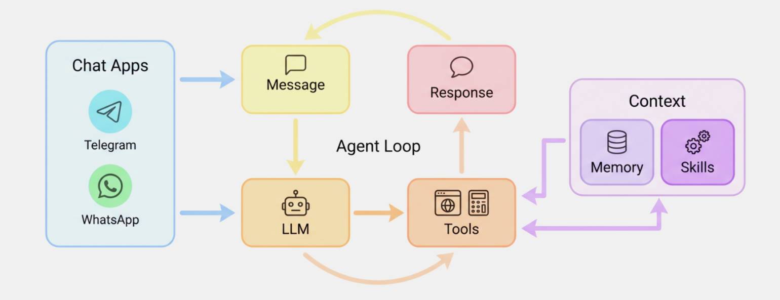 Nanobot — ультралёгкий персональный AI-ассистент, аналог OpenClaw. Агент работает локально и подключается к языковой модели через облачных провайдеров вроде OpenRouter или OpenAI-совместимый сервер (например, Ollama или LM Studio). Управлять ассистентом можно через командную строку, телеграм-бота или другие мессенджеры с поддержкой webhooks и API. Проект полностью опенсорсный, и его можно настроить под множество задач — от автоматизации повседневных операций до сложных сценариев работы с файловой системой, внешними API и выполнения системных команд через терминал.