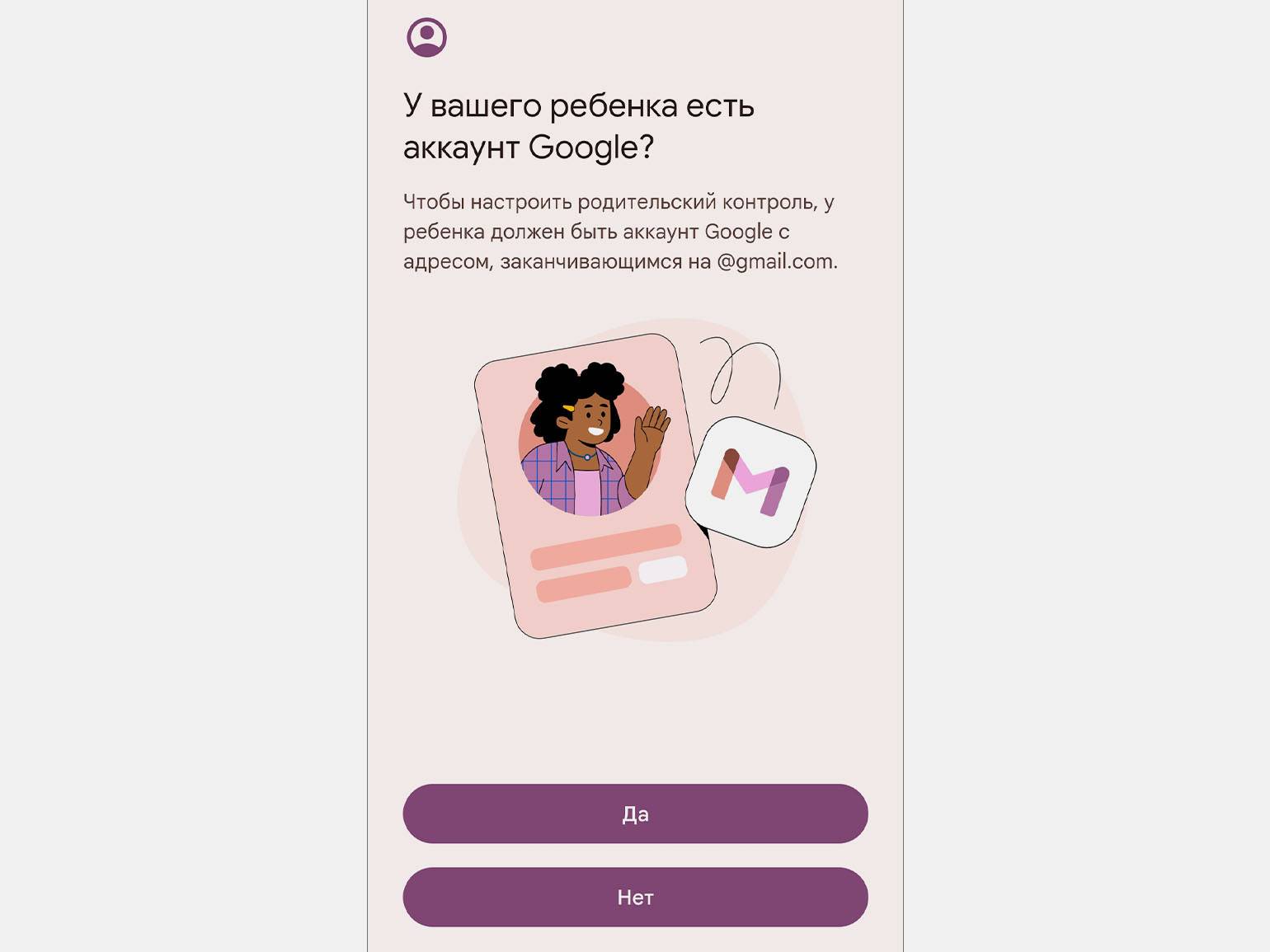 Для начала скачайте приложение из Google Play и после установки на приветственном экране выберите свою учётную запись Google. Сразу после этого вам нужно указать, есть ли у ребёнка аккаунт, — если ещё нет, то перед продолжением настройки его необходимо зарегистрировать.