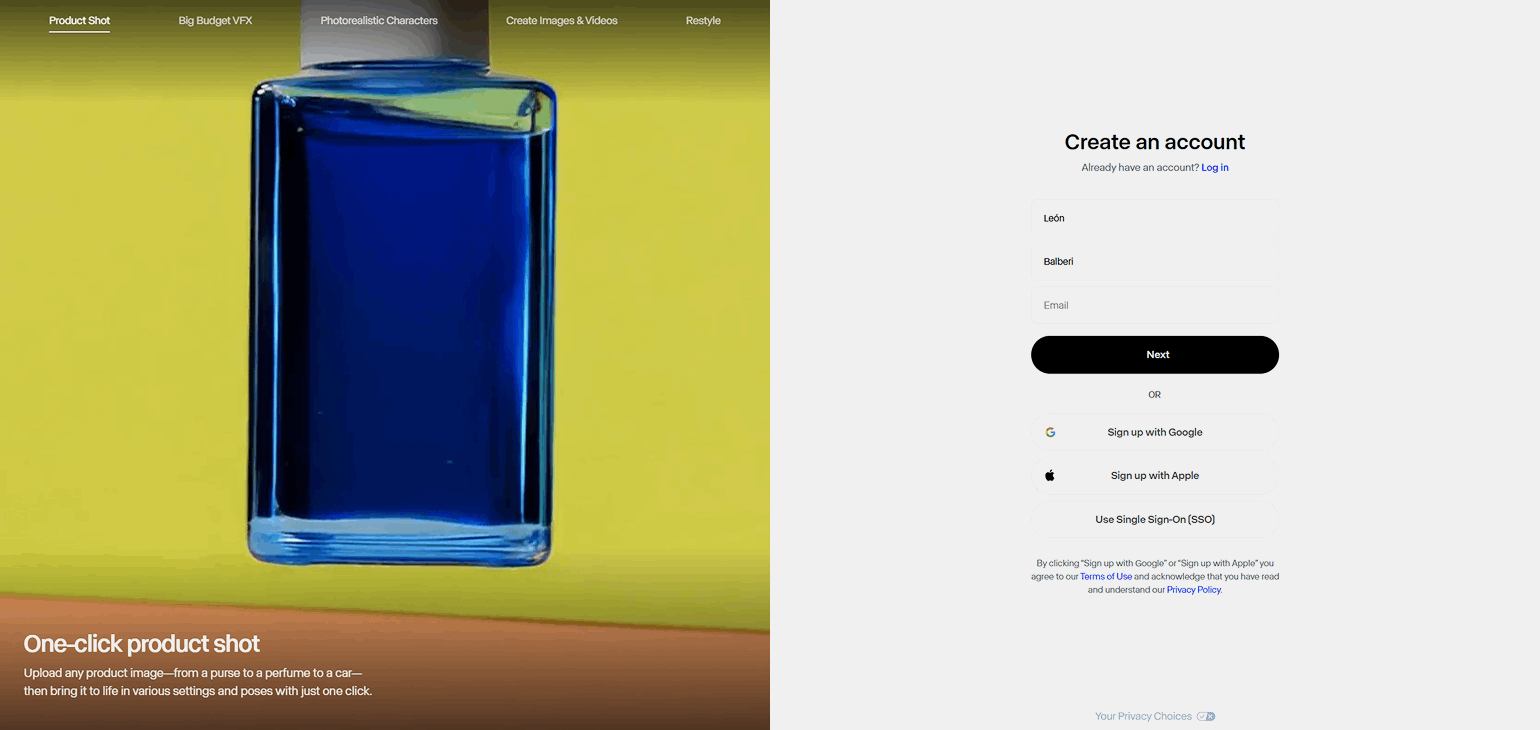 Чтобы создать учётную запись, нажмите на кнопку Try Runway на главной странице сервиса. Введите электронную почту в открывшемся окне или войдите через учётную запись Google или Apple.