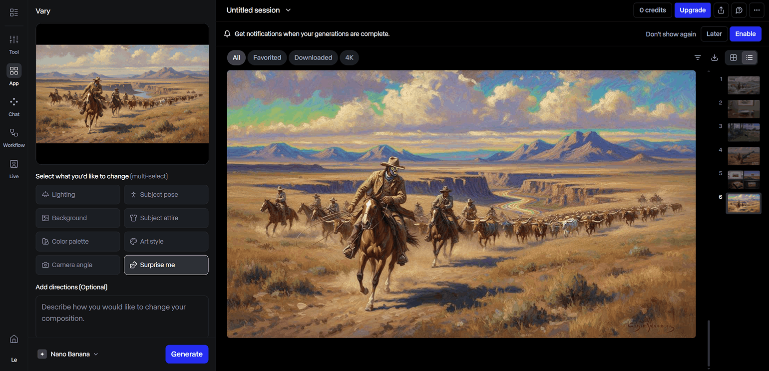 Vary заменяет детали на изображении — от освещения и фона до объектов съёмки. Аналогично работает инструмент Vary Ad, который подойдёт для работы с промоматериалами.