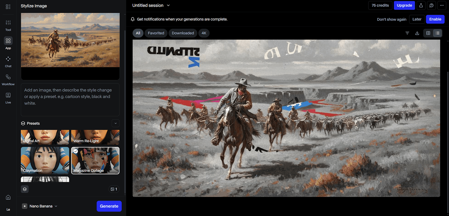 Stylize Image используется для стилизации изображений. На выбор много пресетов с конкретным стилем: карандашный рисунок, акварель, пиксель-арт, чёрно-белые тона и так далее.