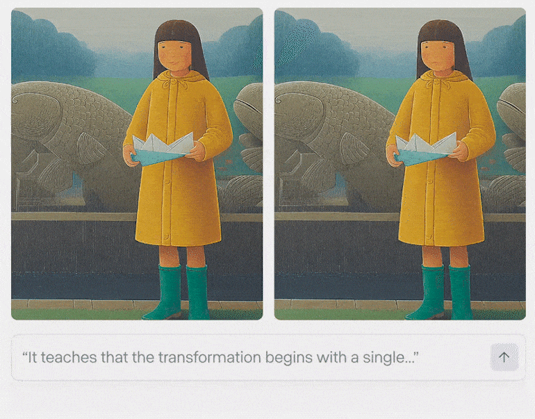 Dialogue подходит для «оживления» и озвучивания персонажей. В рабочем поле инструмента загрузите изображение персонажа и напишите промпт с текстом, который он должен произнести. Голос и стиль озвучки подбираются автоматически.
