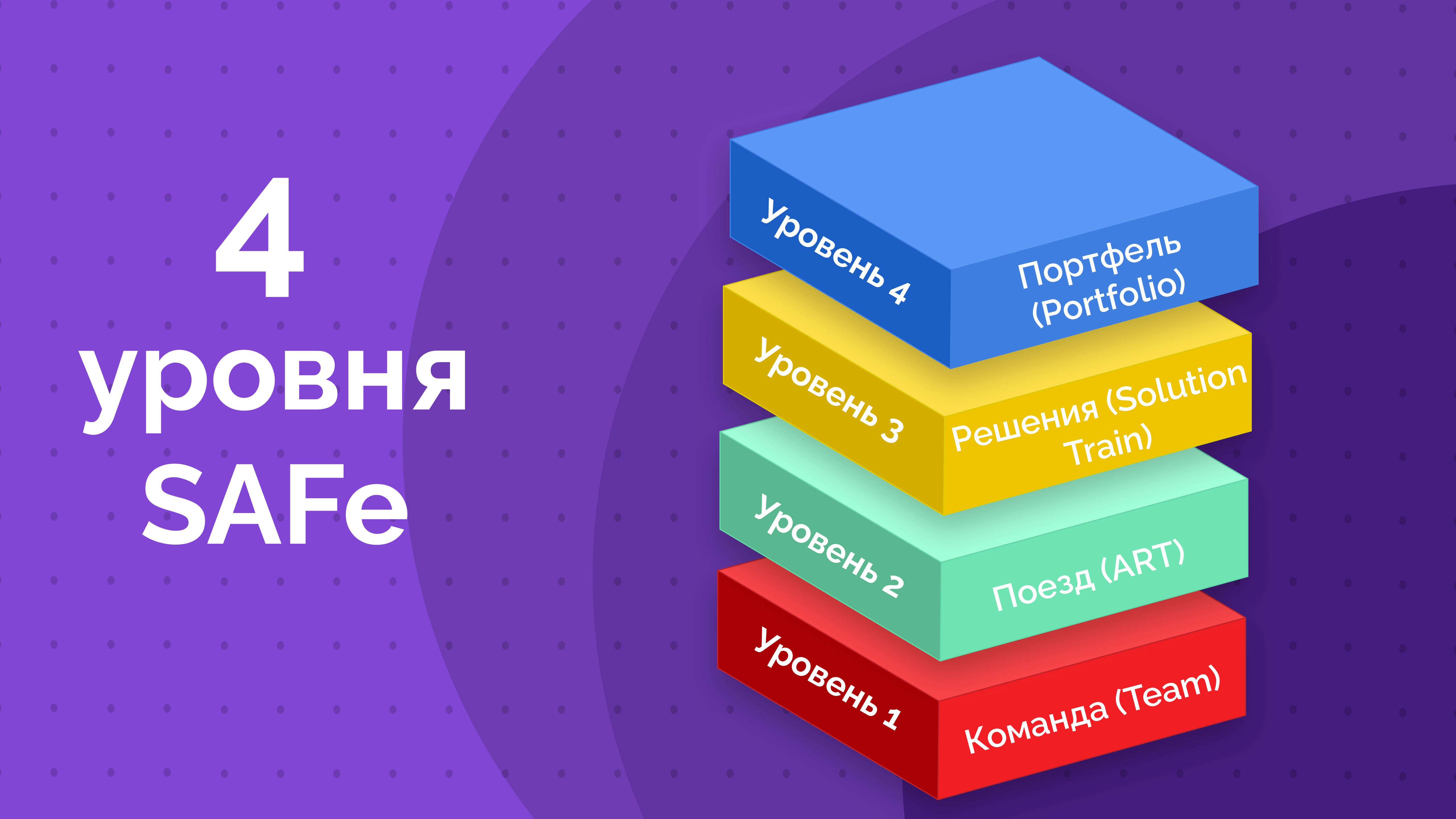 Чтобы разобраться, как работает SAFe, важно понимать, что он строится на нескольких уровнях. Каждый уровень отвечает за свой масштаб управления — от стратегии компании в целом до работы конкретных команд.