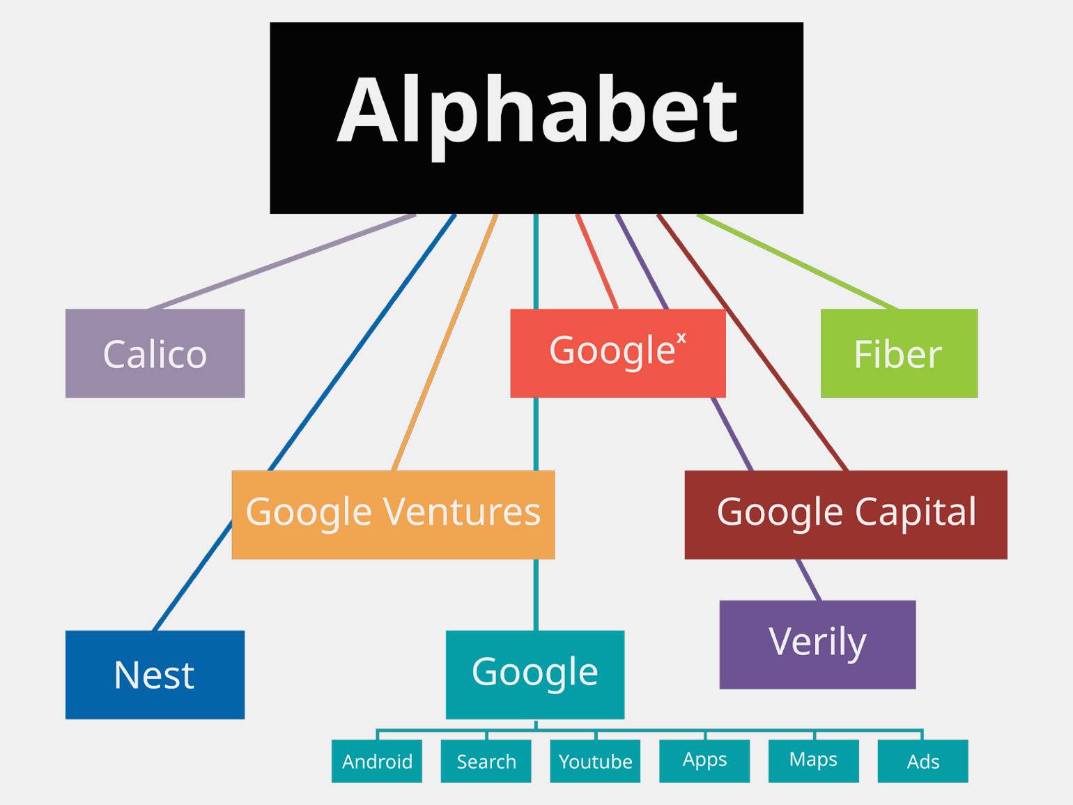 Компания провела масштабную реорганизацию, создав материнскую компанию Alphabet Inc. Google стала одной из её дочерних структур. Сергей Брин занял пост президента Alphabet, а Ларри Пейдж — генерального директора холдинга. Новая структура позволила отделить основной поисковый бизнес Google от экспериментальных проектов. Это обеспечило более прозрачное управление и эффективное распределение ресурсов между различными направлениями деятельности компании.