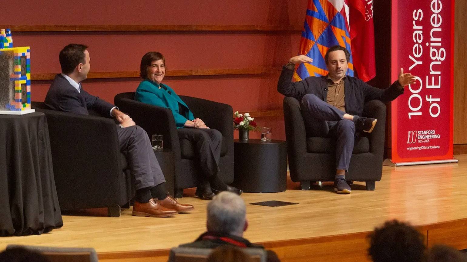 Сергей Брин во время беседы на мероприятии в Стэнфорде