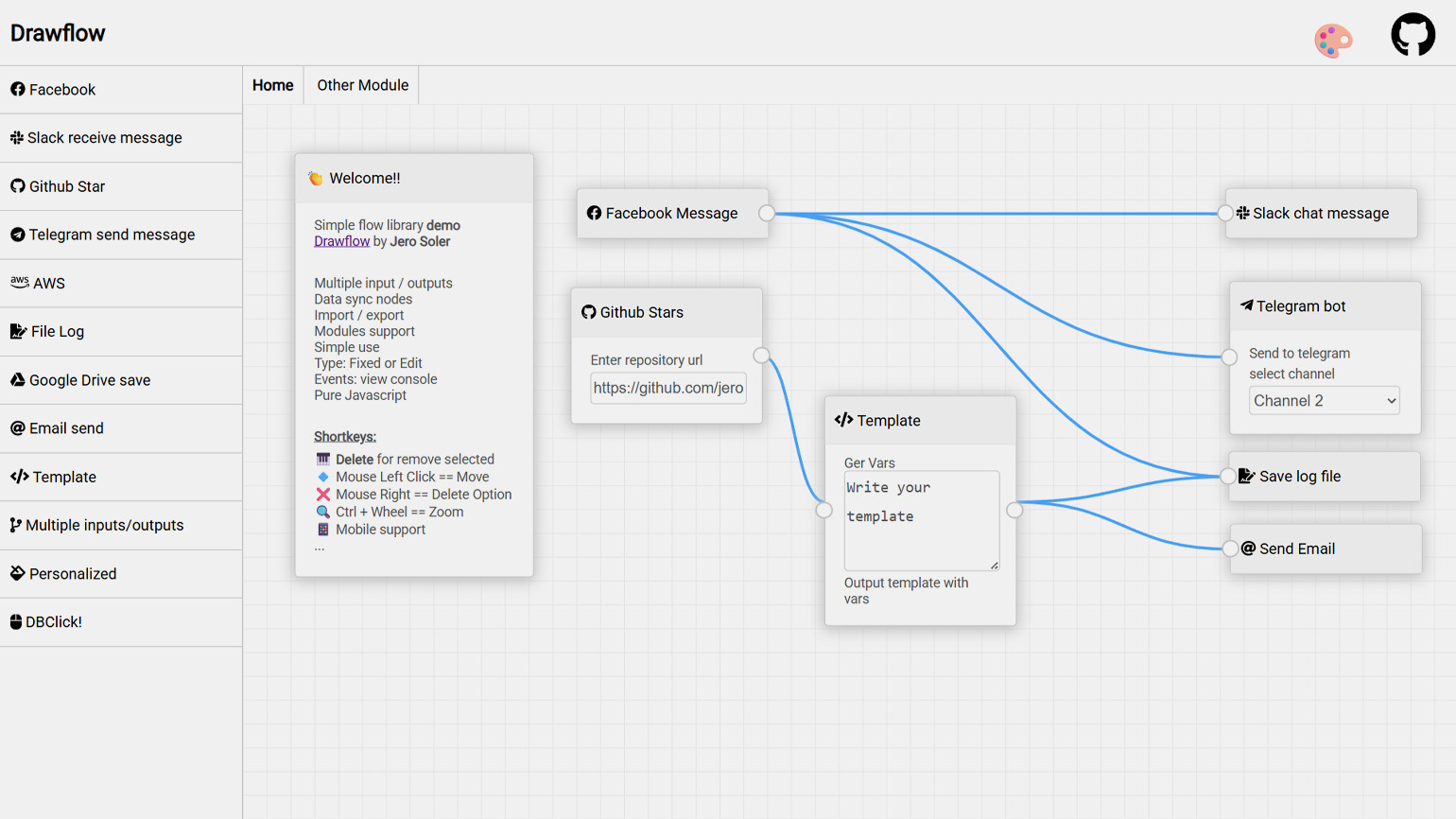 Простая JavaScript-библиотека для представления потоков данных с помощью интерактивных диаграмм. С её помощью разработчики могут создавать конструкторы бизнес-процессов, визуализировать алгоритмы или разрабатывать low-code-инструменты.