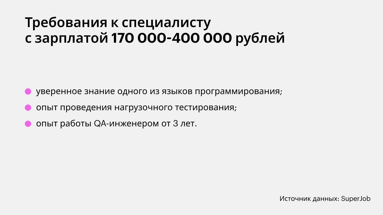 «Претендовать на такой доход могут специалисты со стажем работы от 3 лет, владеющие инструментарием нагрузочного тестирования и имеющие опыт разработки автотестов».
