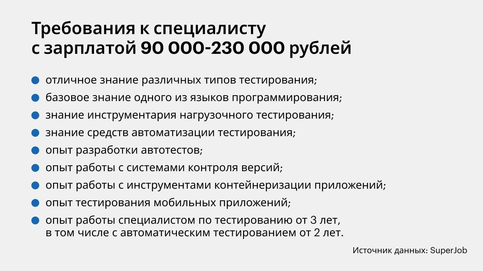 В исследовании SuperJob сказано, что должны уметь специалисты в тестировании ПО и сколько им платят. Показываем результаты в галерее.