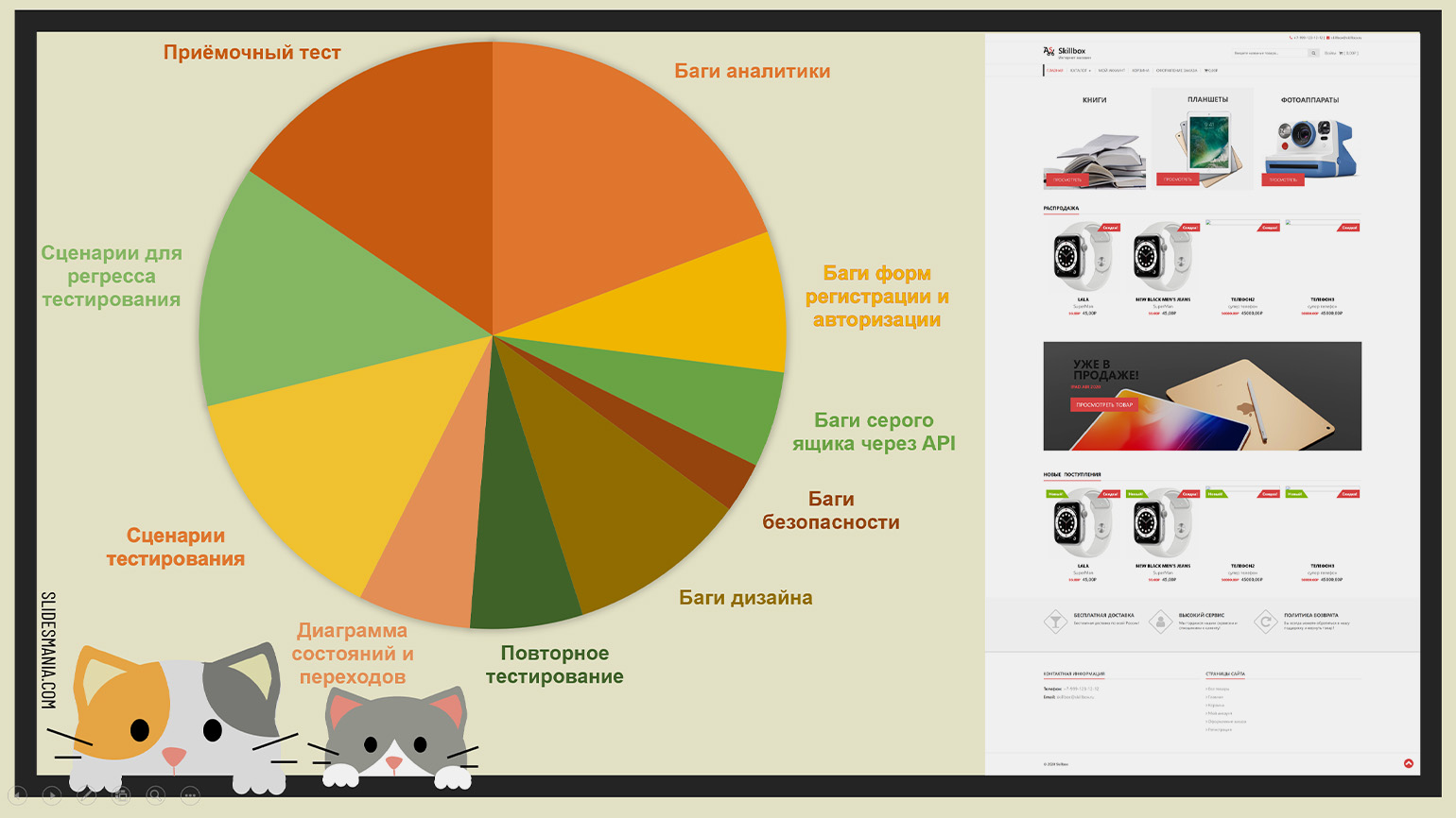— Необходимо было протестировать сайт интернет-магазина и составить всю сопроводительную документацию — чек-листы, тест-кейсы, баг-репорты, диаграммы.