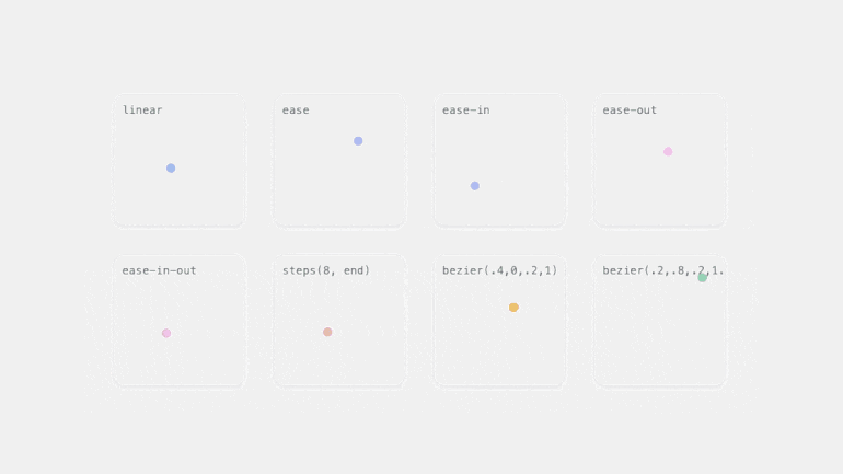 - ease — медленный старт, ускорение к середине, замедление к концу (по умолчанию);