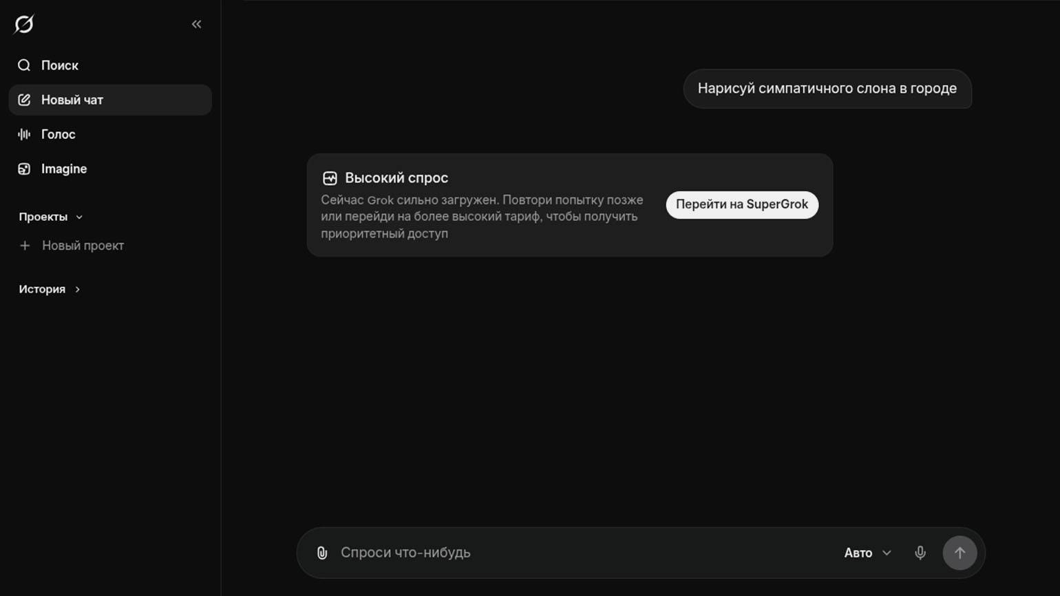 Пробная версия: изображения можно создавать бесплатно, если сервис не перегружен. В остальных случаях нужна подписка SuperGrok — от 30 долларов в месяц. Пробный период — 3 дня