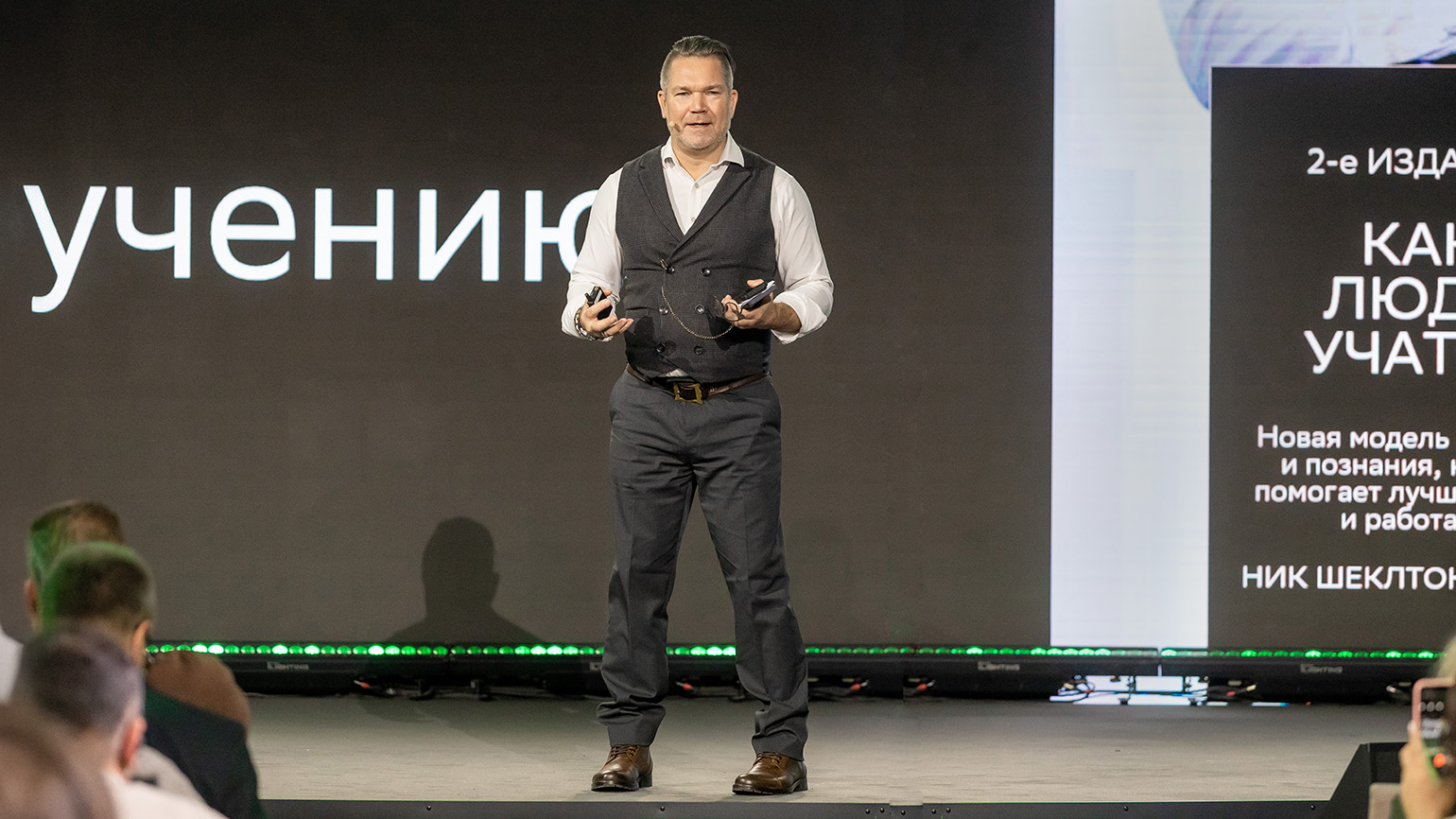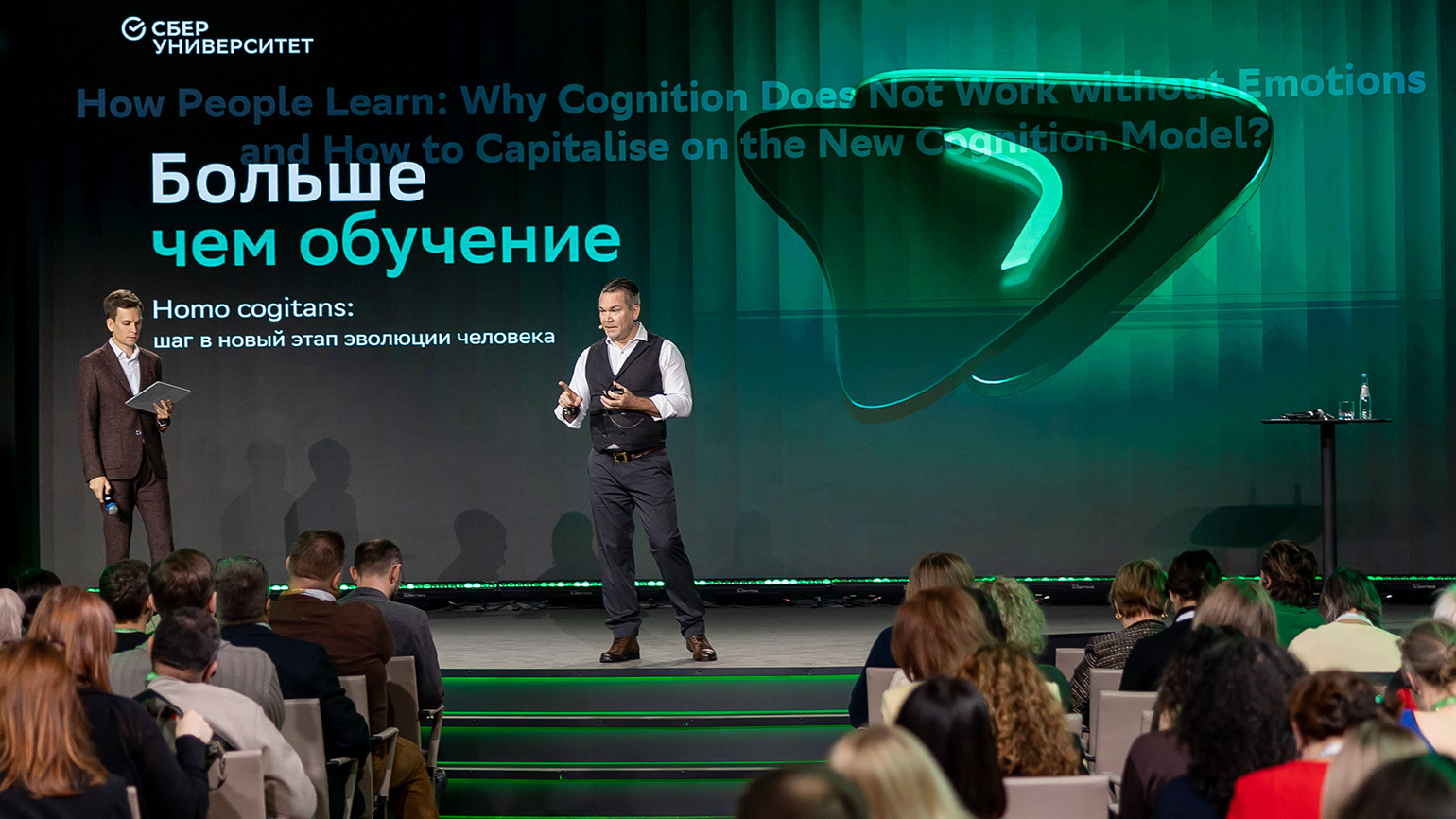«Можете ли вы представить, что в головах и сердцах ваших учеников остаются не знания, а эмоции? Когда я работал преподавателем, для меня это была довольно неудобная мысль, потому что я-то фокусировался на содержании, словах, а оказывается, люди запоминают эмоции», — поделился спикер.