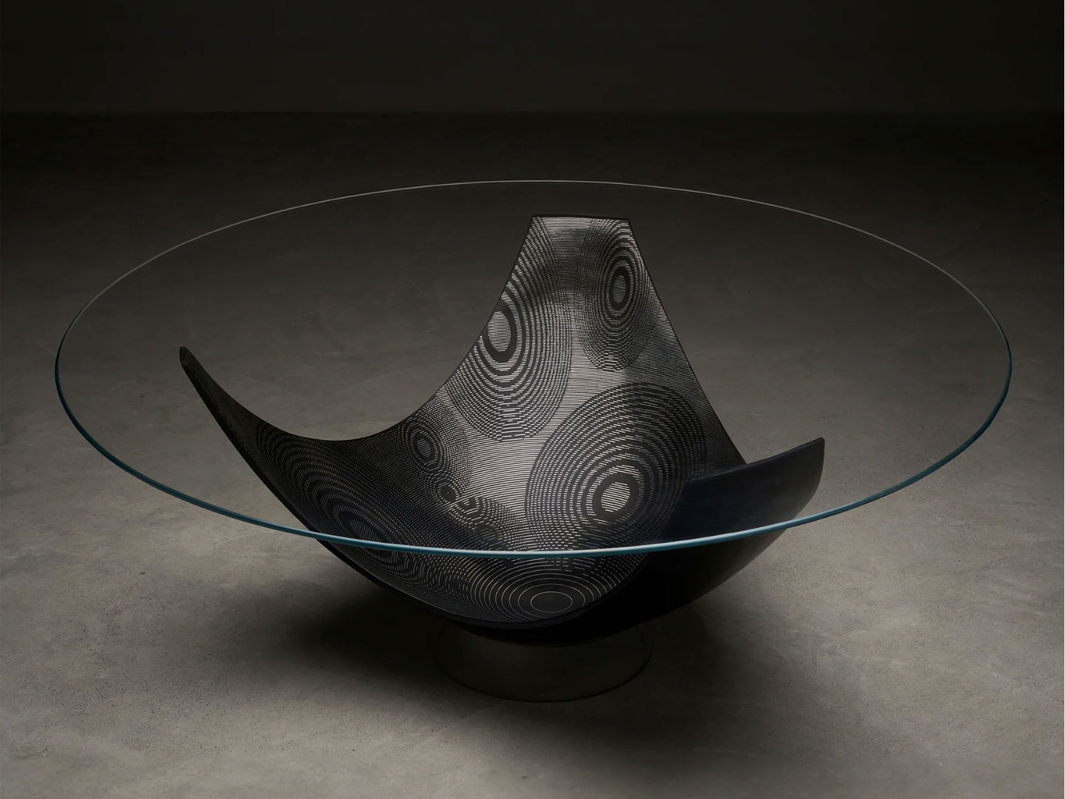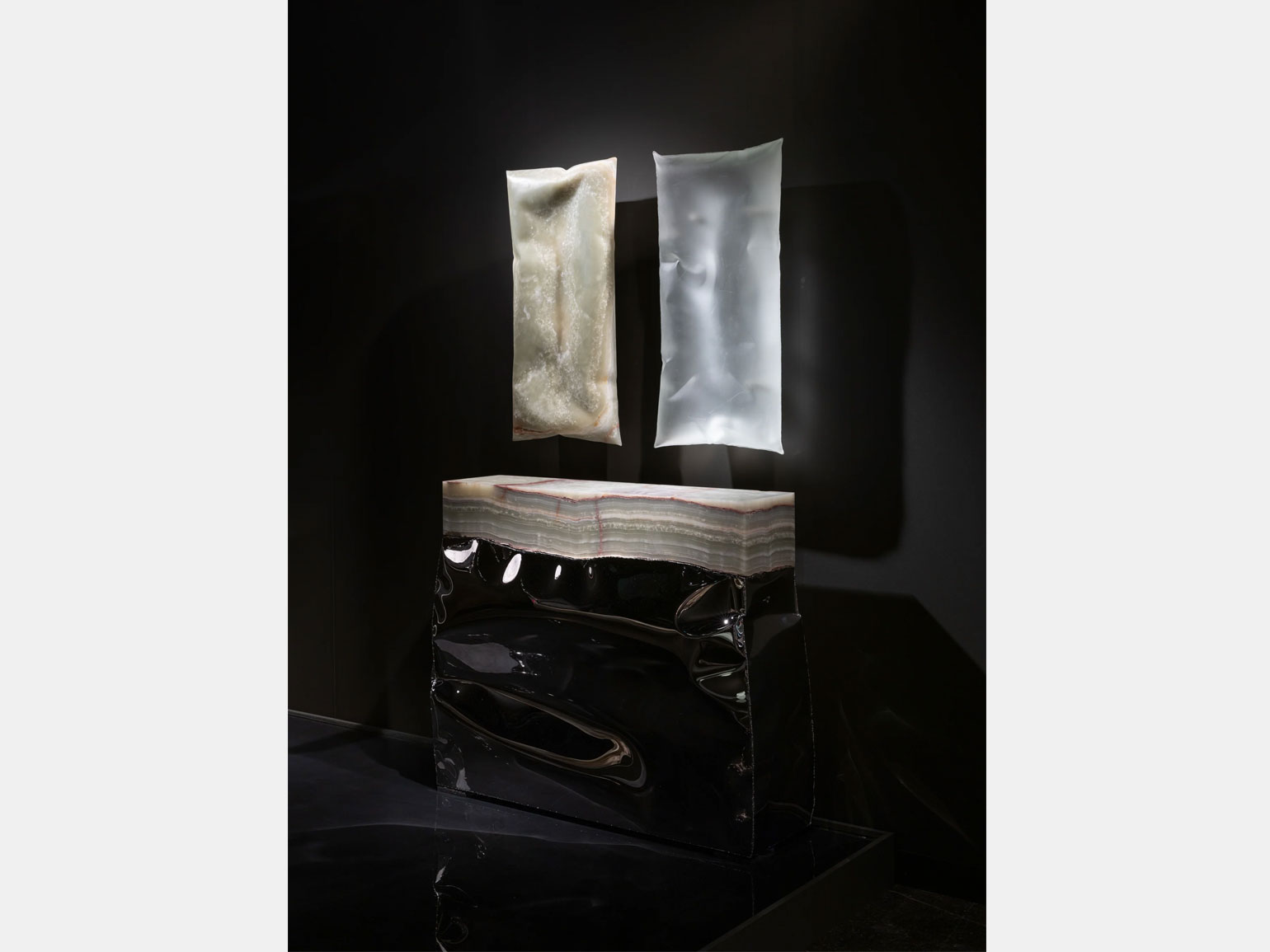 Например, в его консольном столе Crushed Console Mirrored Steel Onyx гнутая сталь кажется мягкой, а лежащая на её зеркальной поверхности рельефная ониксовая плита — практически невесомой.
