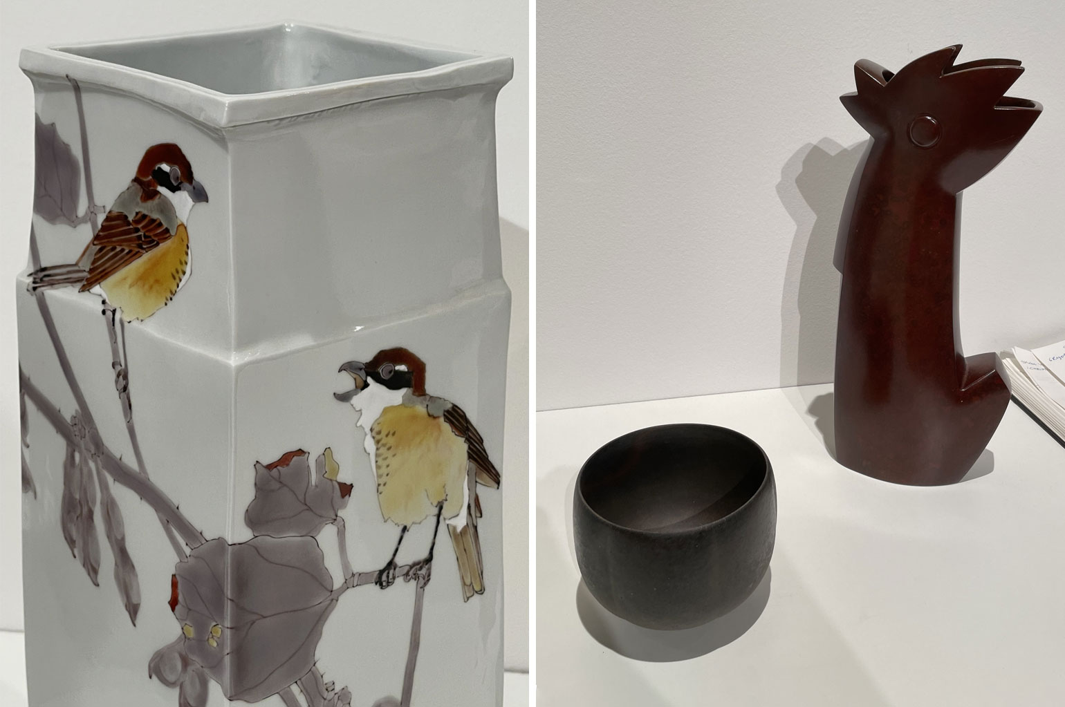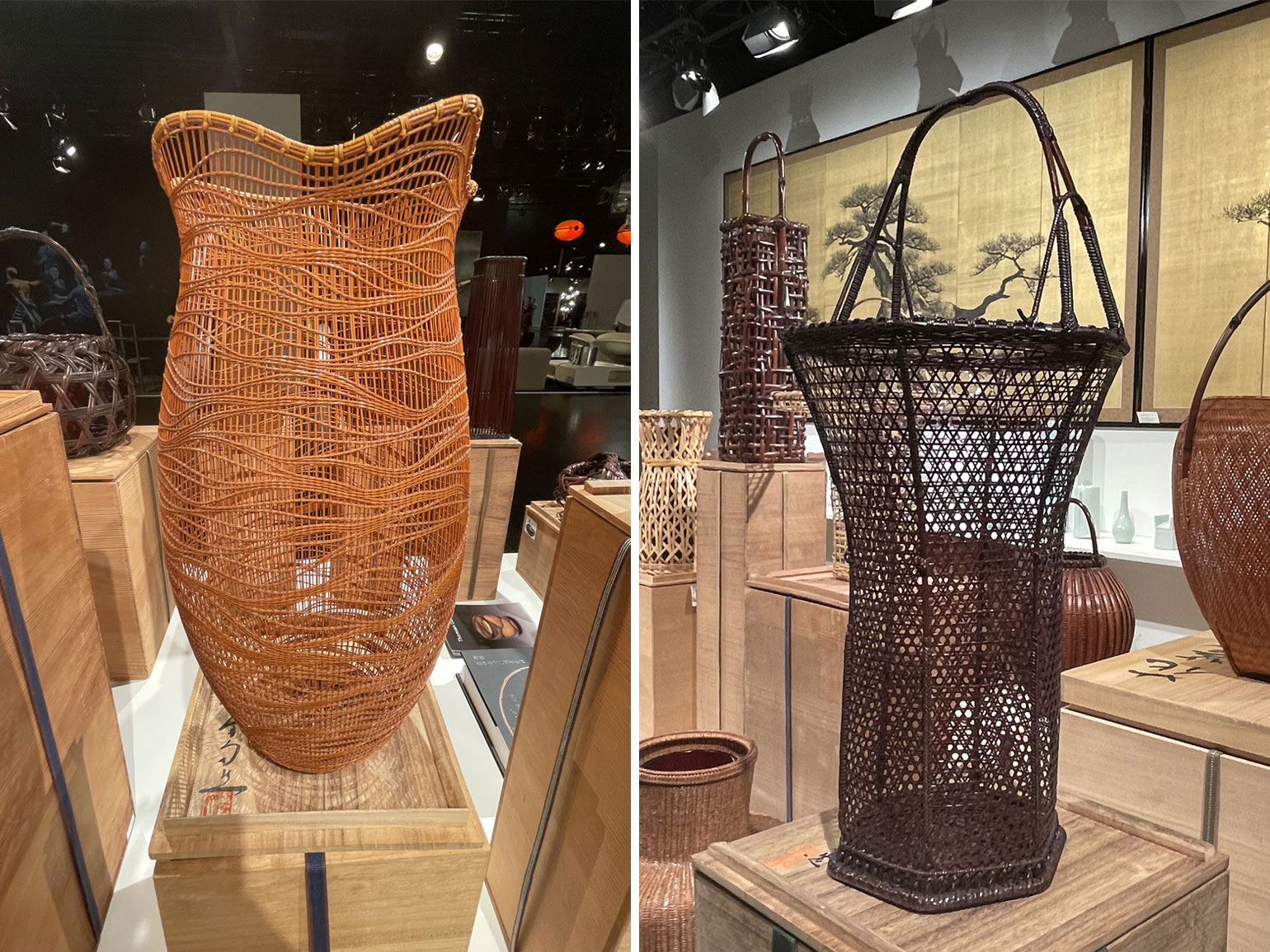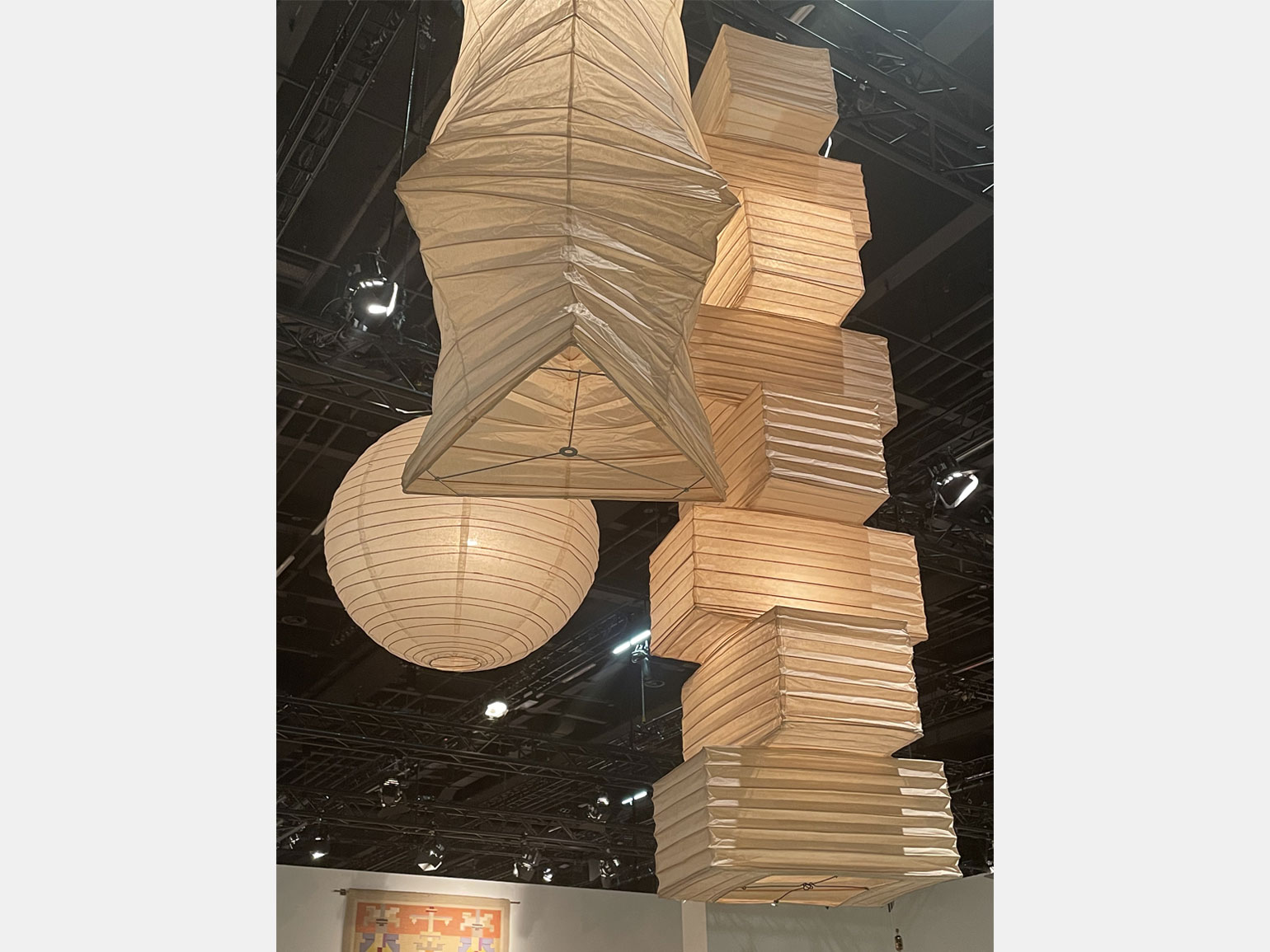 На выставке можно было увидеть много оригинальных работ японских ремесленников середины прошлого века. В том числе традиционные светильники из бумаги, получившие особую популярность в модернистском дизайне США после Второй мировой войны.