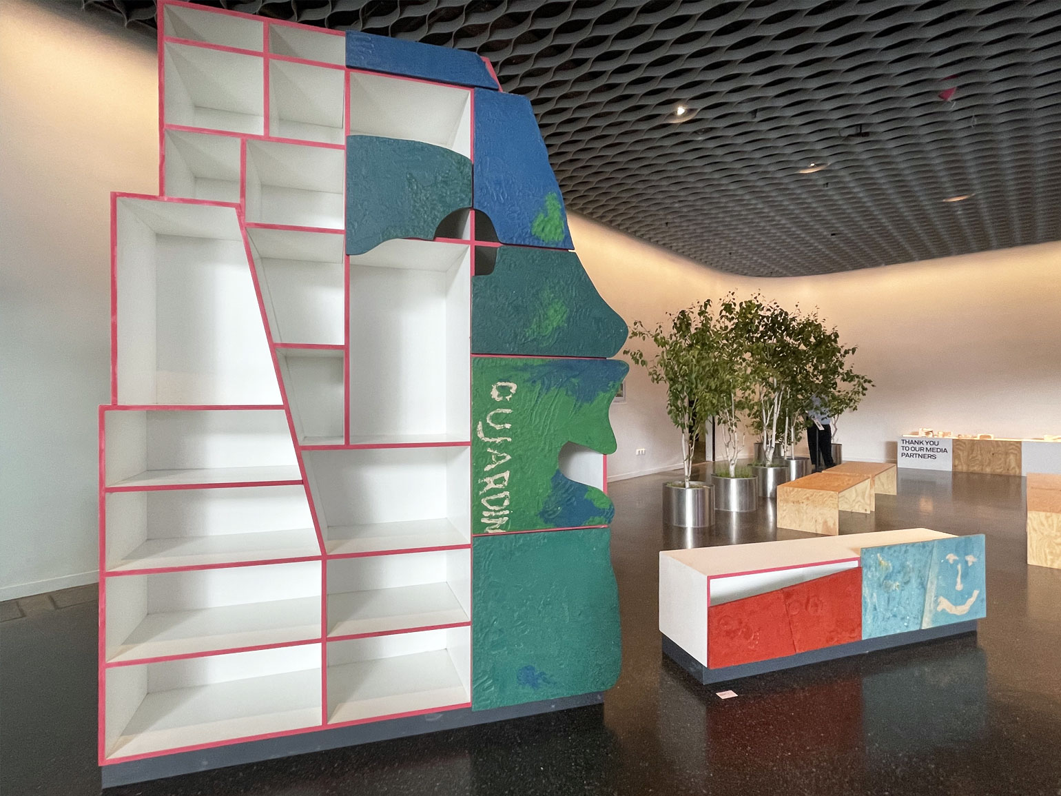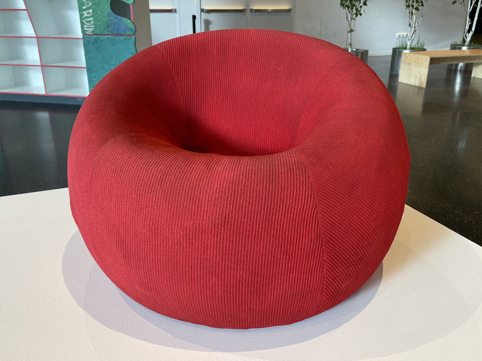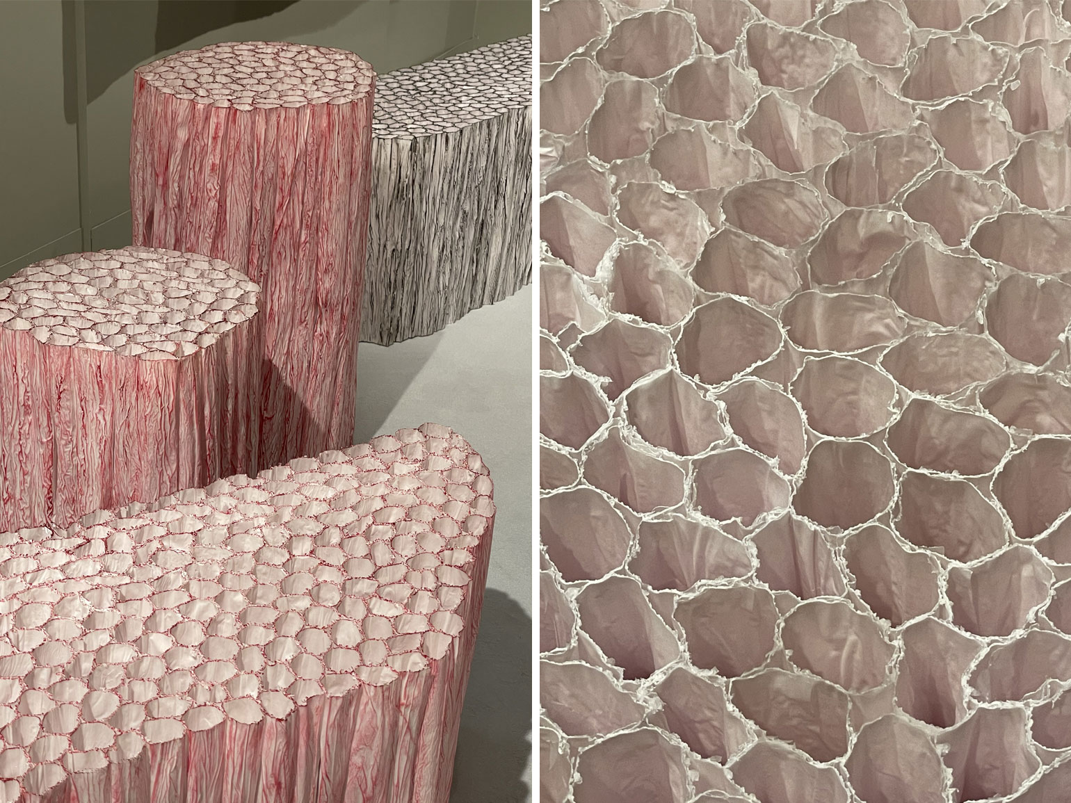 Основание объекта выполнено из мрамора, добавляющего композиции монументальности, а сами сиденья — из нескользкой, мягкой и тёплой пробки, комфортной для сидения. Такой контраст материалов также говорит о ценности разнообразия.