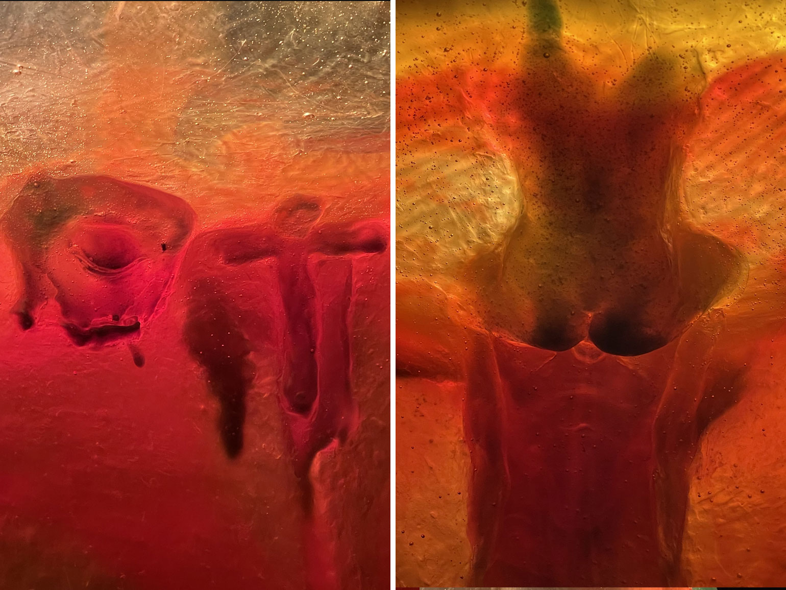 По-настоящему магический эффект производит технология работы художника с цветом, создающая эффект вибрирующих градиентных переходов — они меняют оттенки по мере приближения человека к картине. Для основы своих работ Ник Томм использует традиционные средства (например, краску), затем наносит слой специальных чернил, заливает поверхность глянцевой смолой и обжигает паяльной лампой — чтобы придать покрытию равномерный стеклянный блеск.
