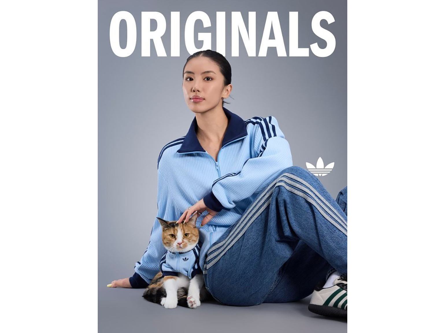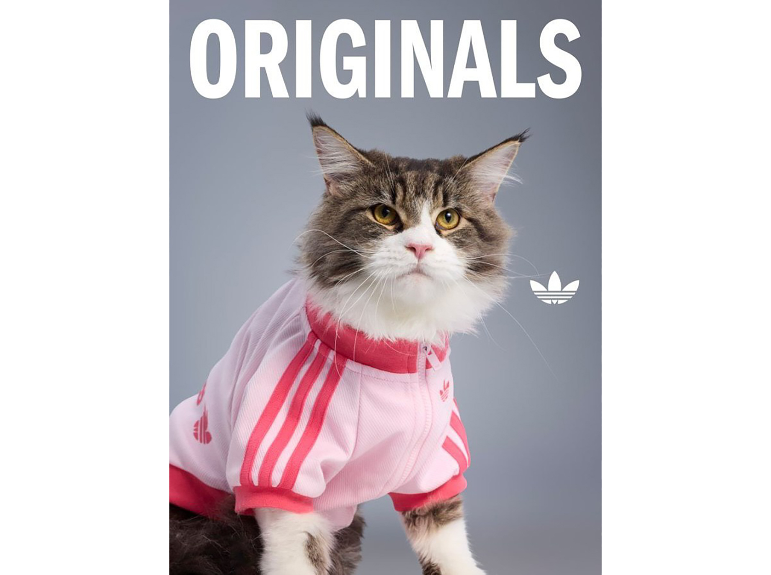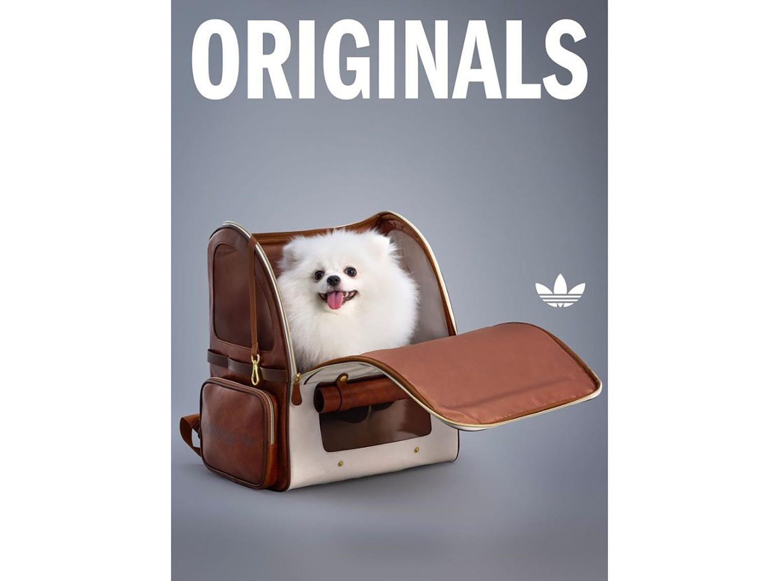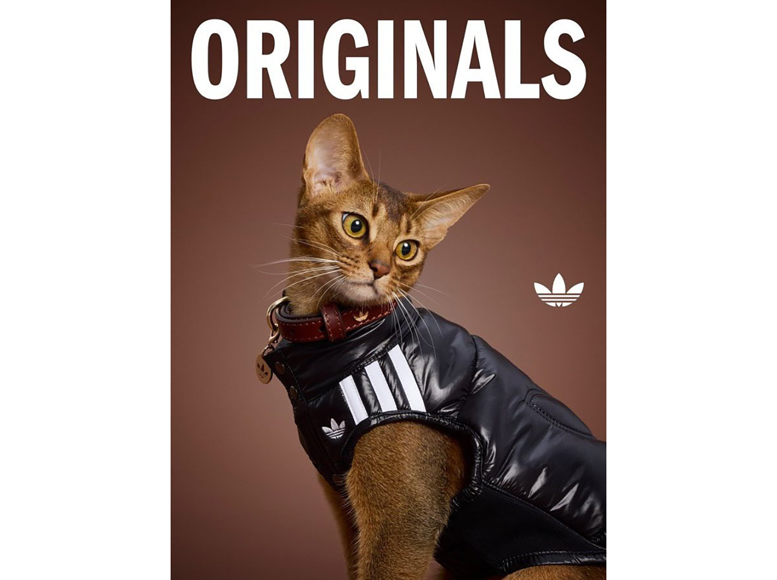 В коллекцию для домашних животных вошли ветровки, жилеты и спортивные костюмы с классическими элементами дизайна — тремя полосками и логотипом Trefoil.
