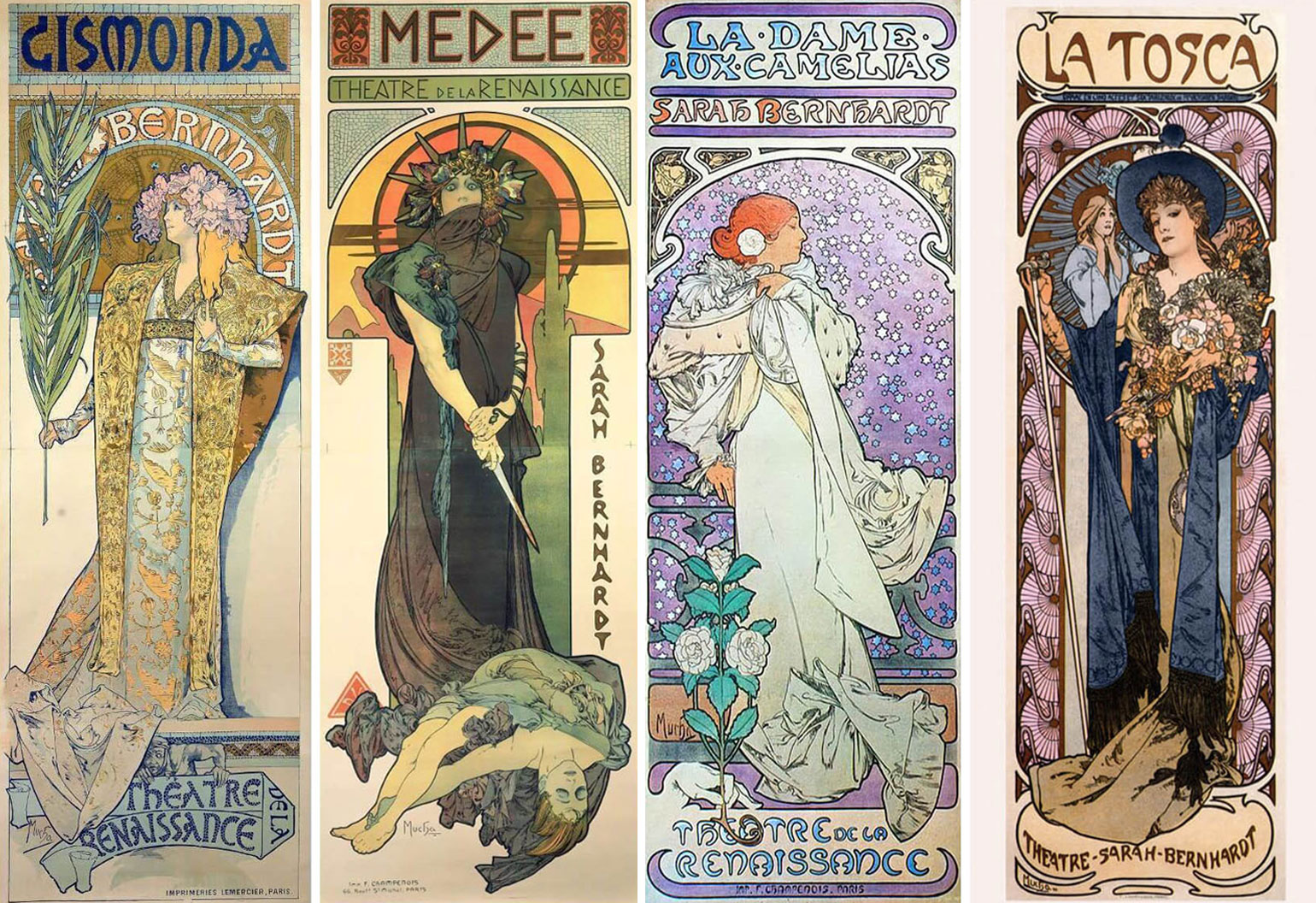 Театральные афиши. Плакаты для постановок Сары Бернар — «Жисмонда» (1894), «Медея» (1898), «Гамлет», «Дама с камелиями» — сделали улицы Парижа похожими на галерею под открытым небом.
