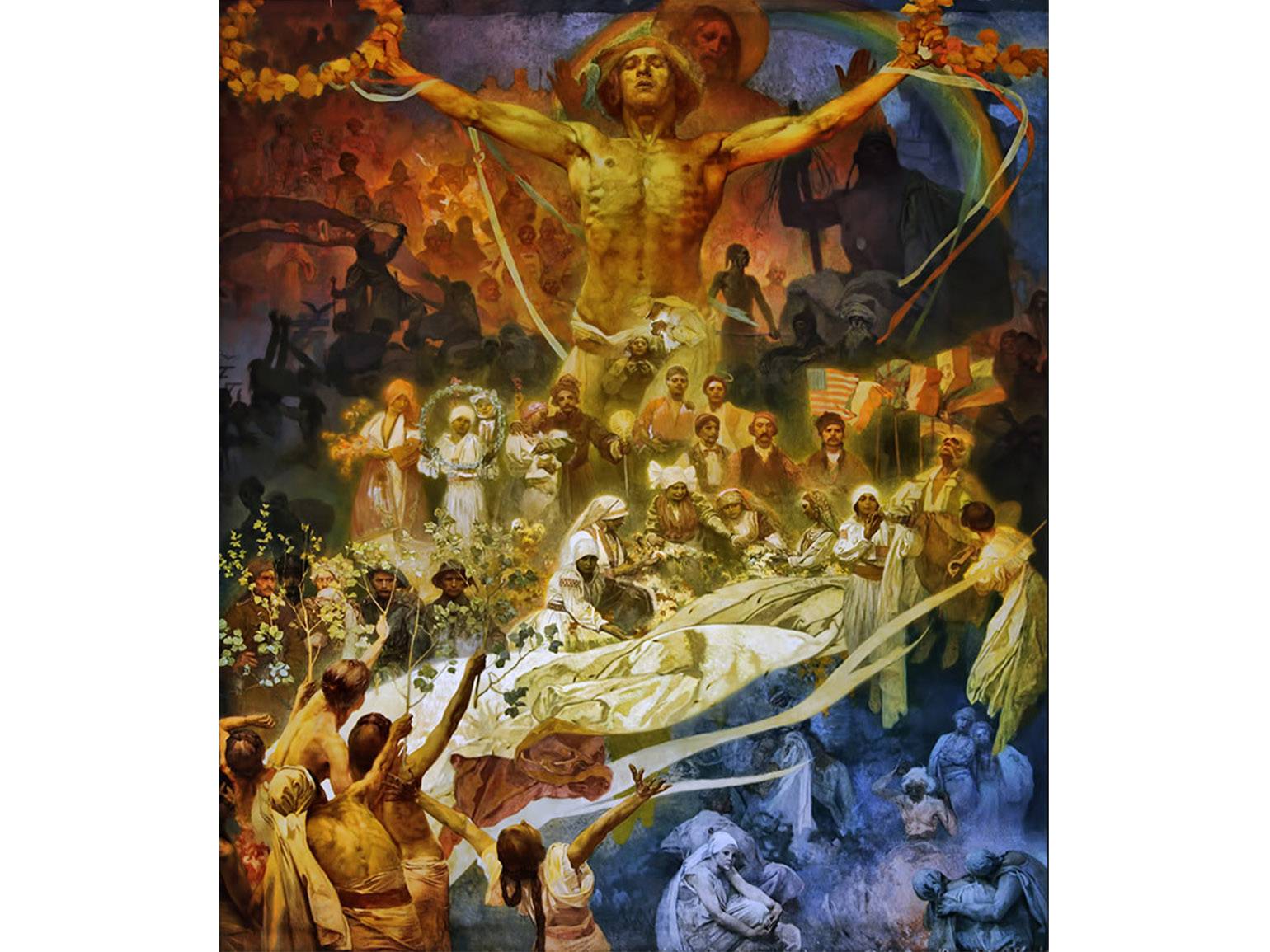 «Славянская эпопея». Крупнейший проект художника и его главный труд — цикл из двадцати монументальных полотен, посвящённых истории славянских народов. Над ним Муха работал во второй половине жизни и в 1928 году подарил серию Чехословакии.
